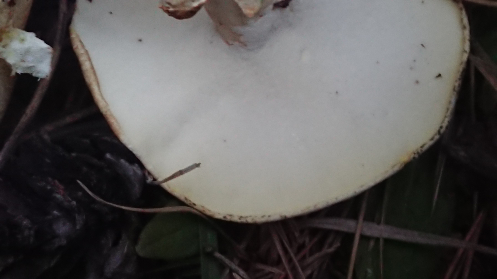 Lamellen: herablaufend, rundlich bis eckig, ca. 0,5 mm Durchmesser, ca. 2.5 bis 3 mm lang, grünlichweiss, später gelblich bis gelbbraun.
