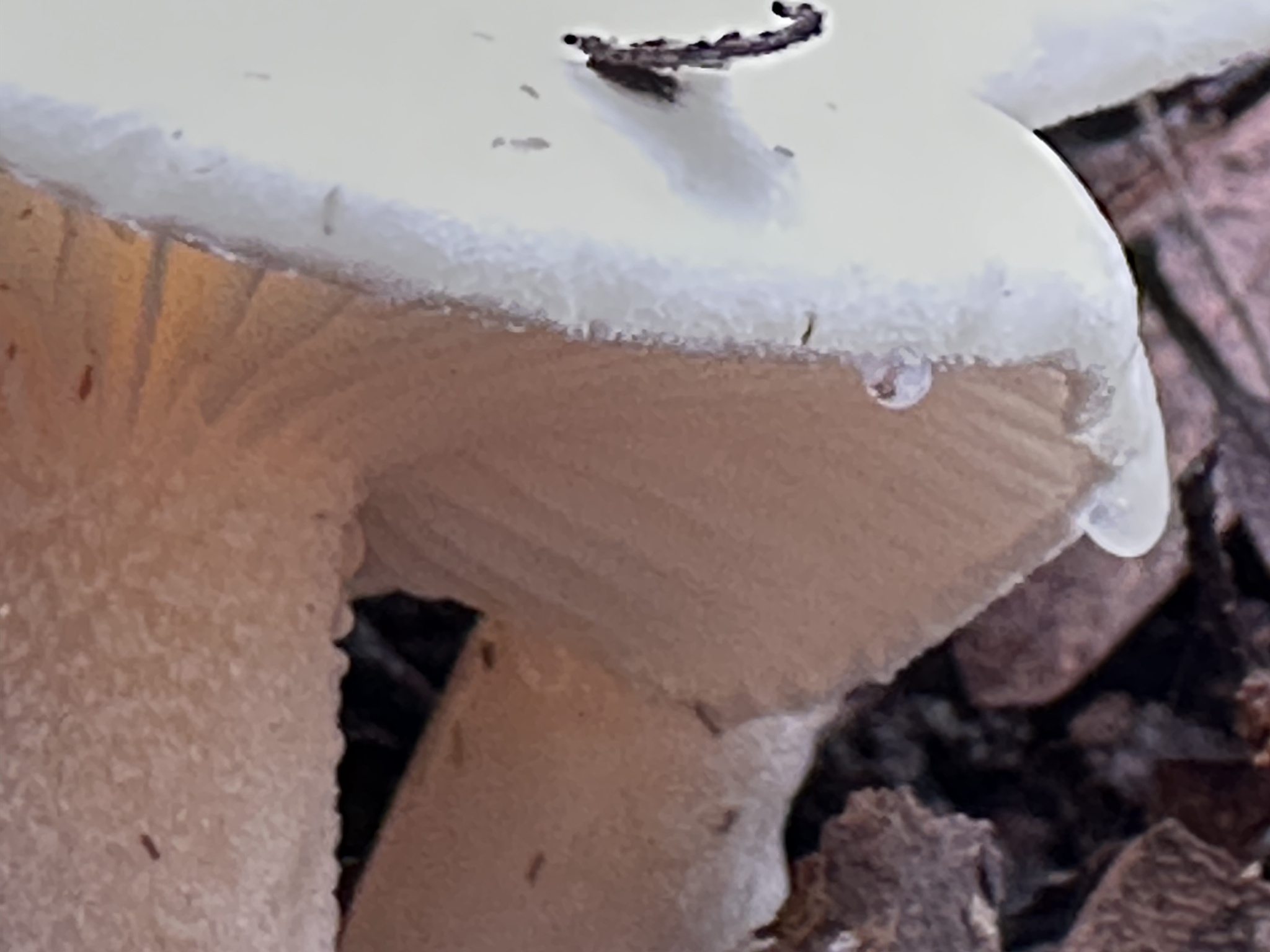 Lamellen: weiss, dicklich, etwas herablaufend, wachsartig