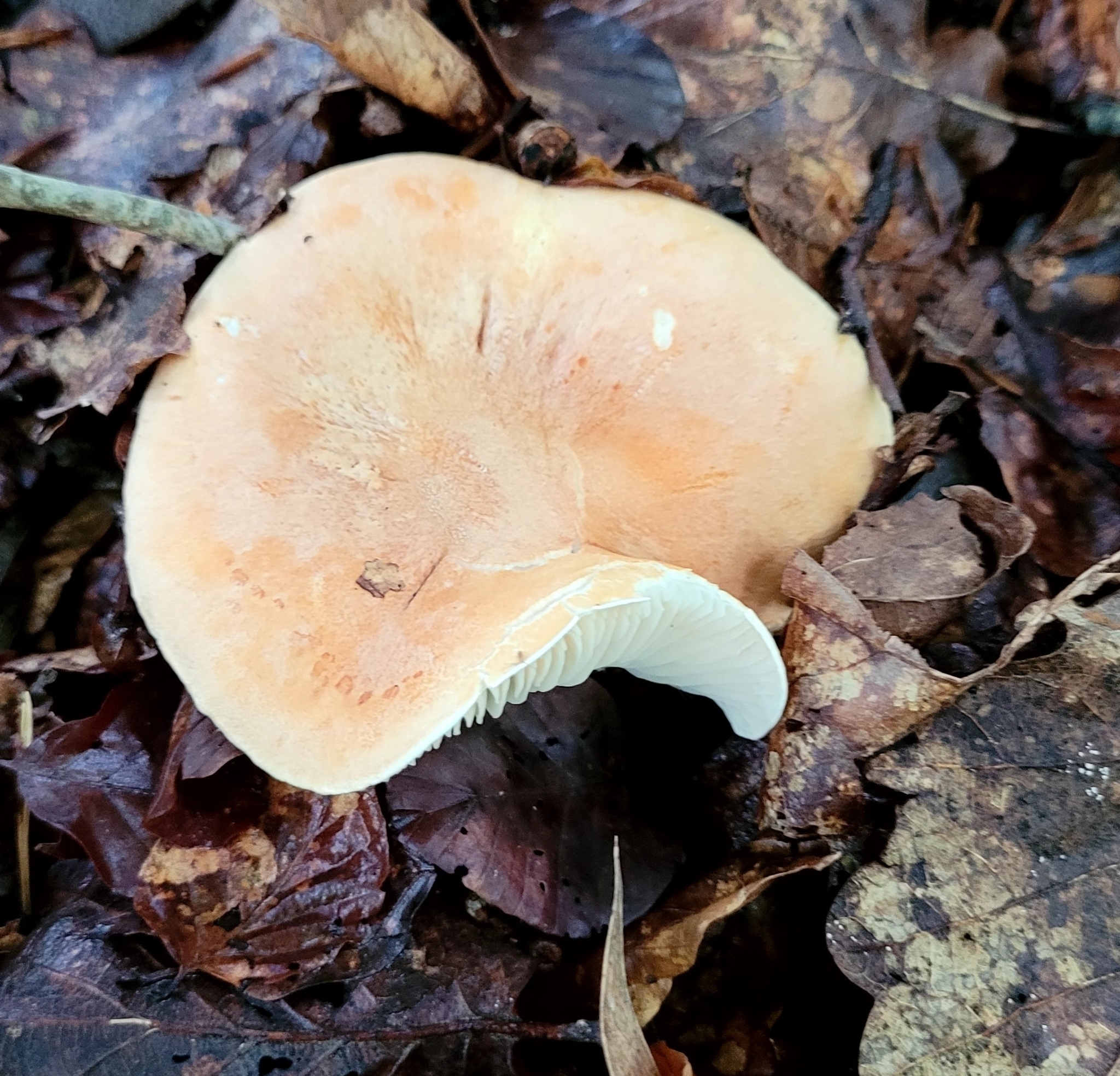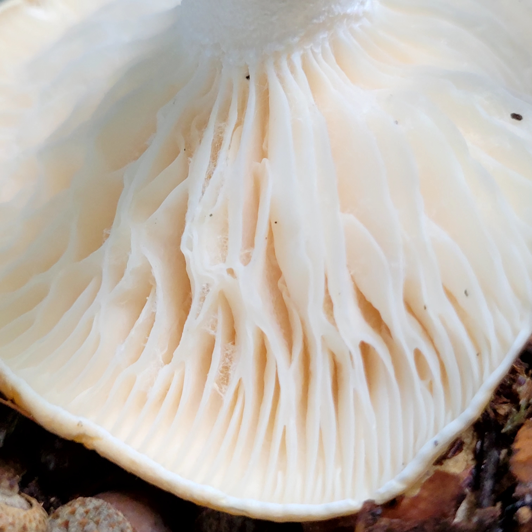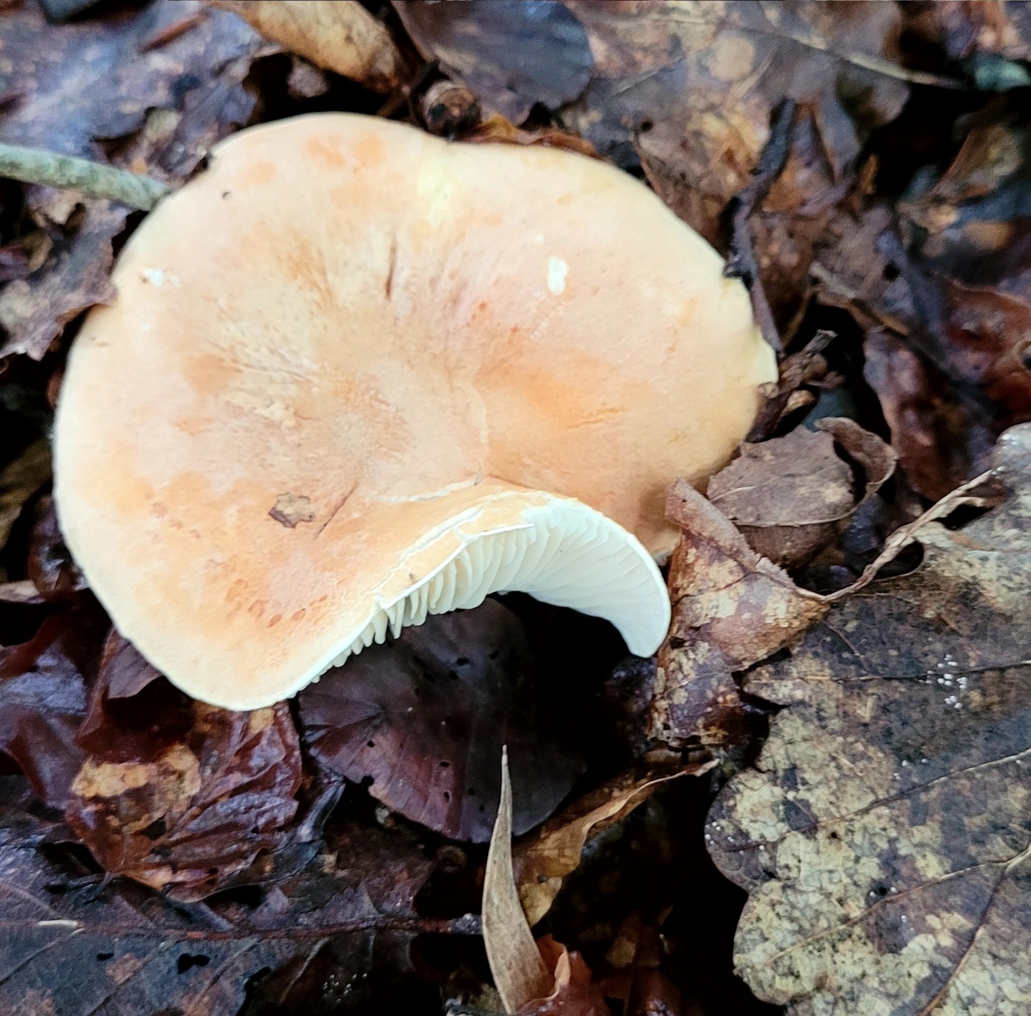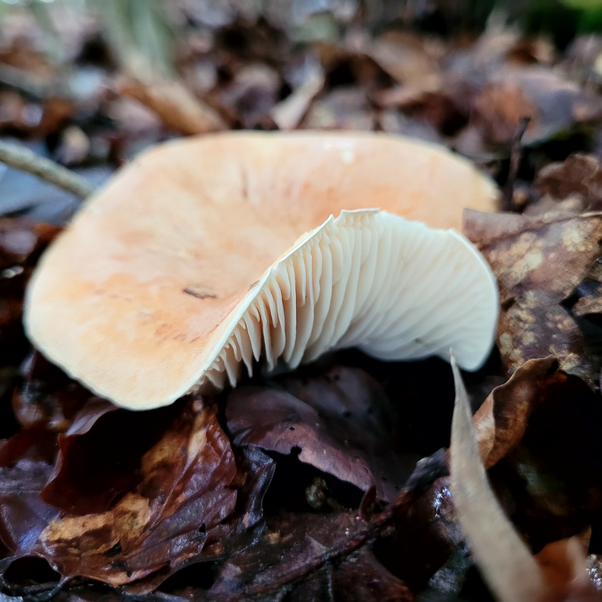 Lamellen: dick, weisslich blass bis orange, breit angewachsen, leicht herablaufend.