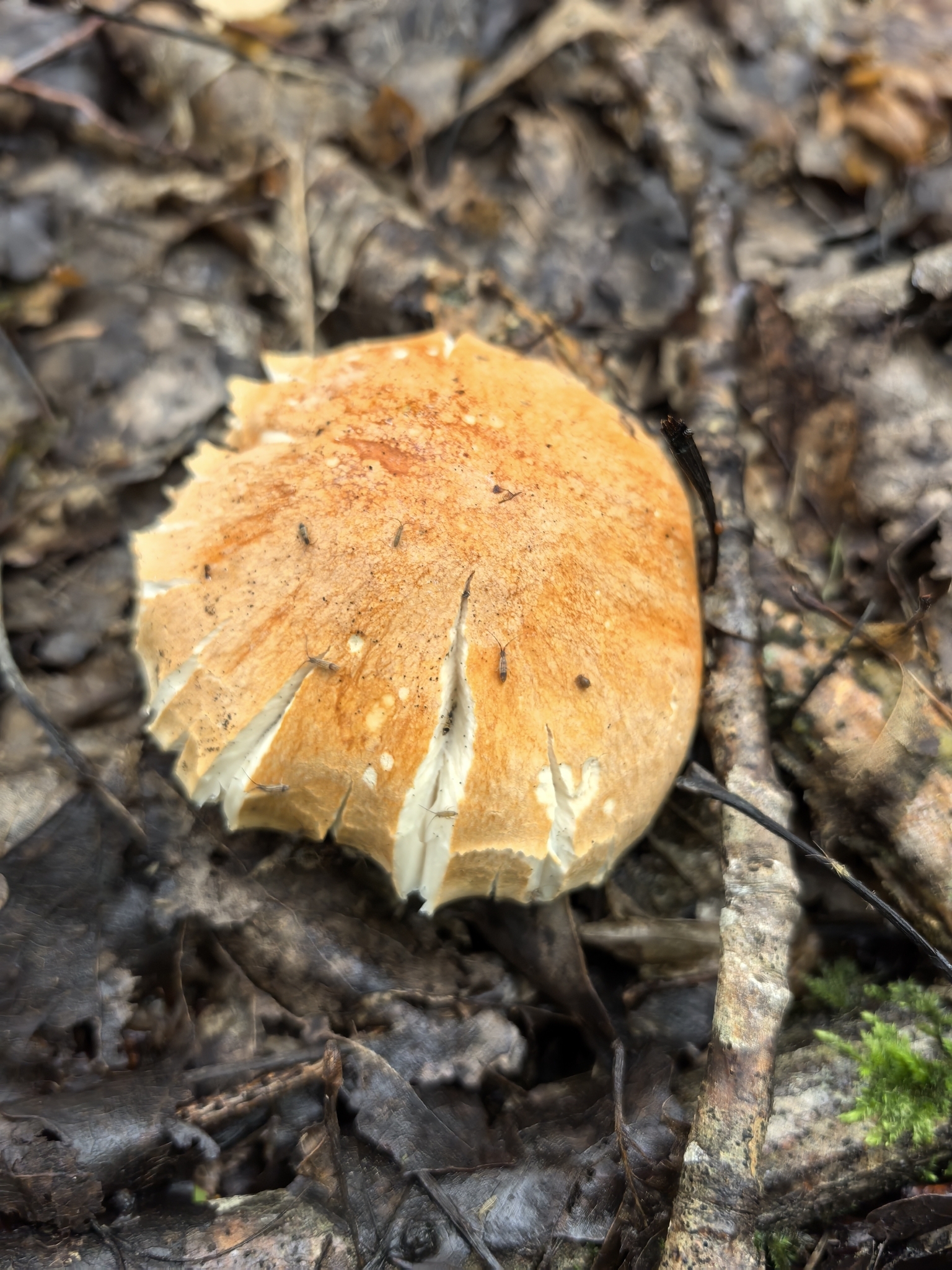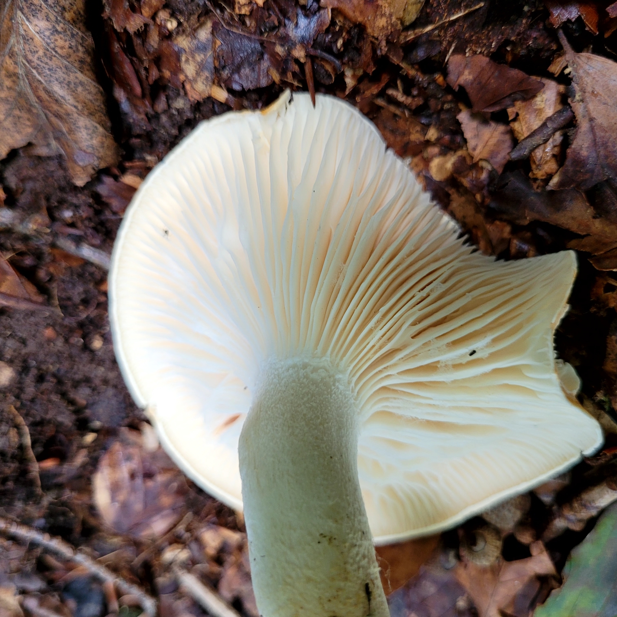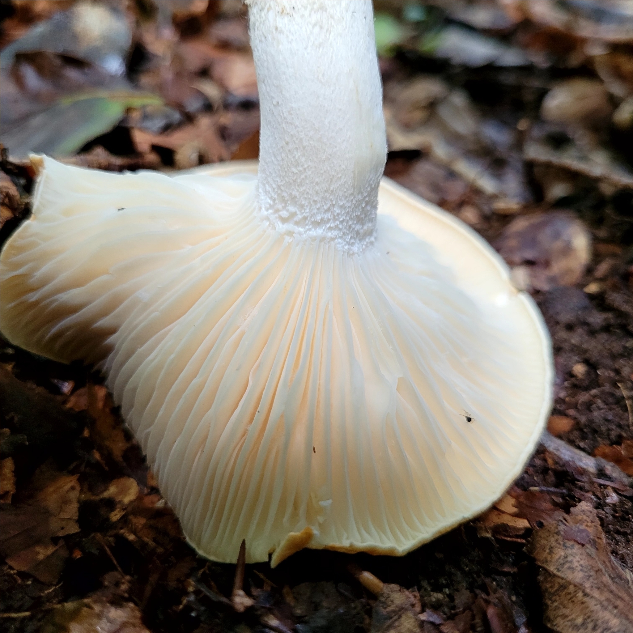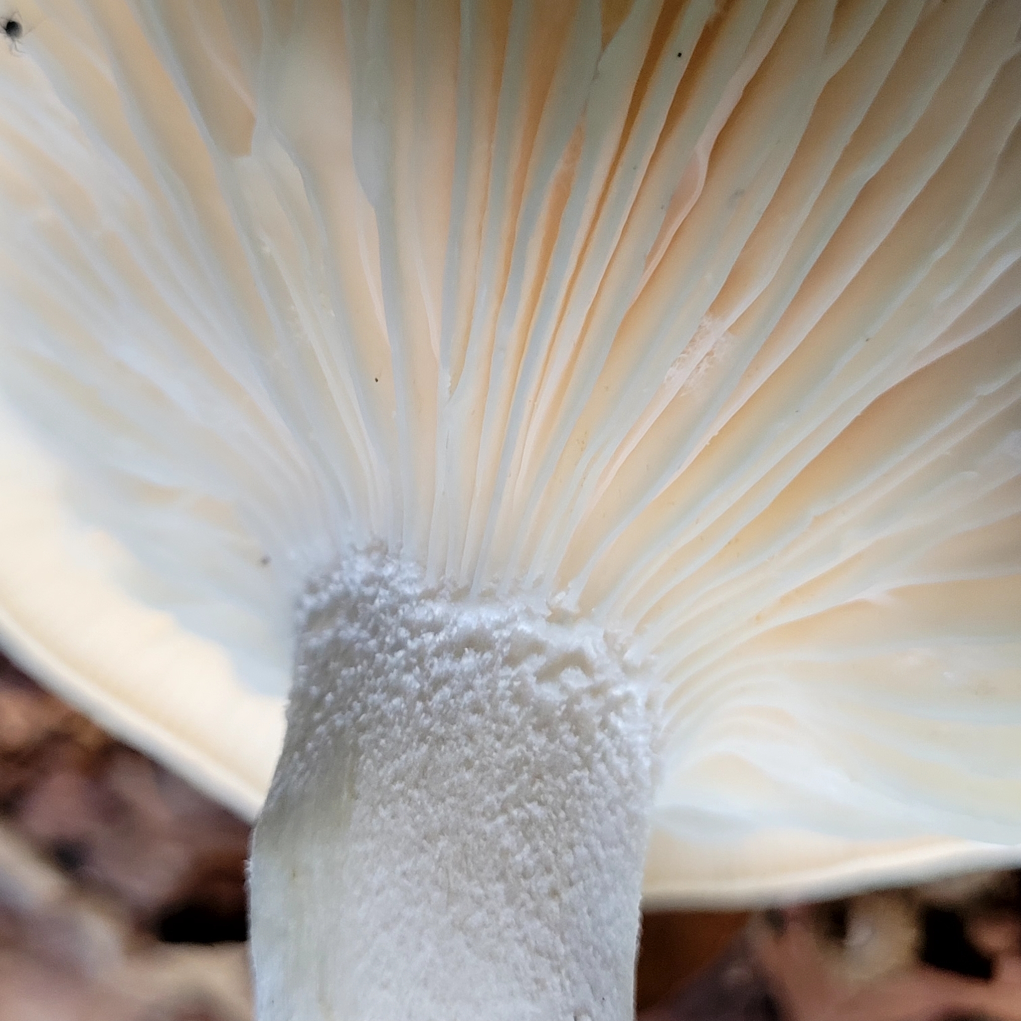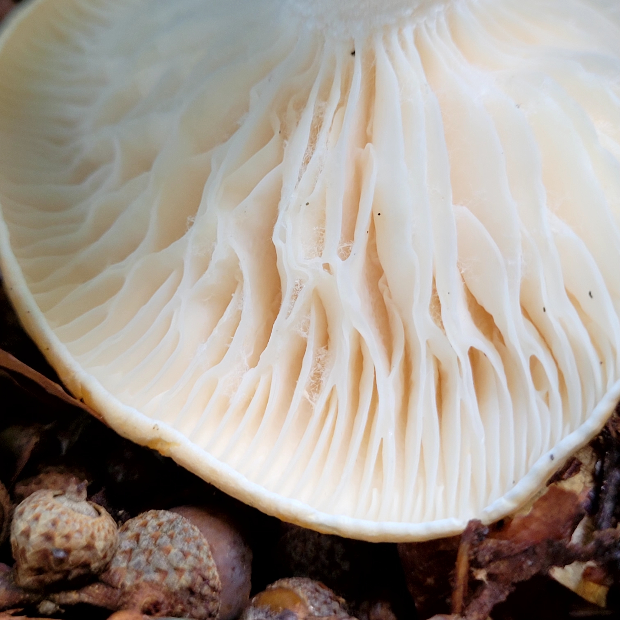 Lamellen: dick, weisslich blass bis orange, breit angewachsen, leicht herablaufend.