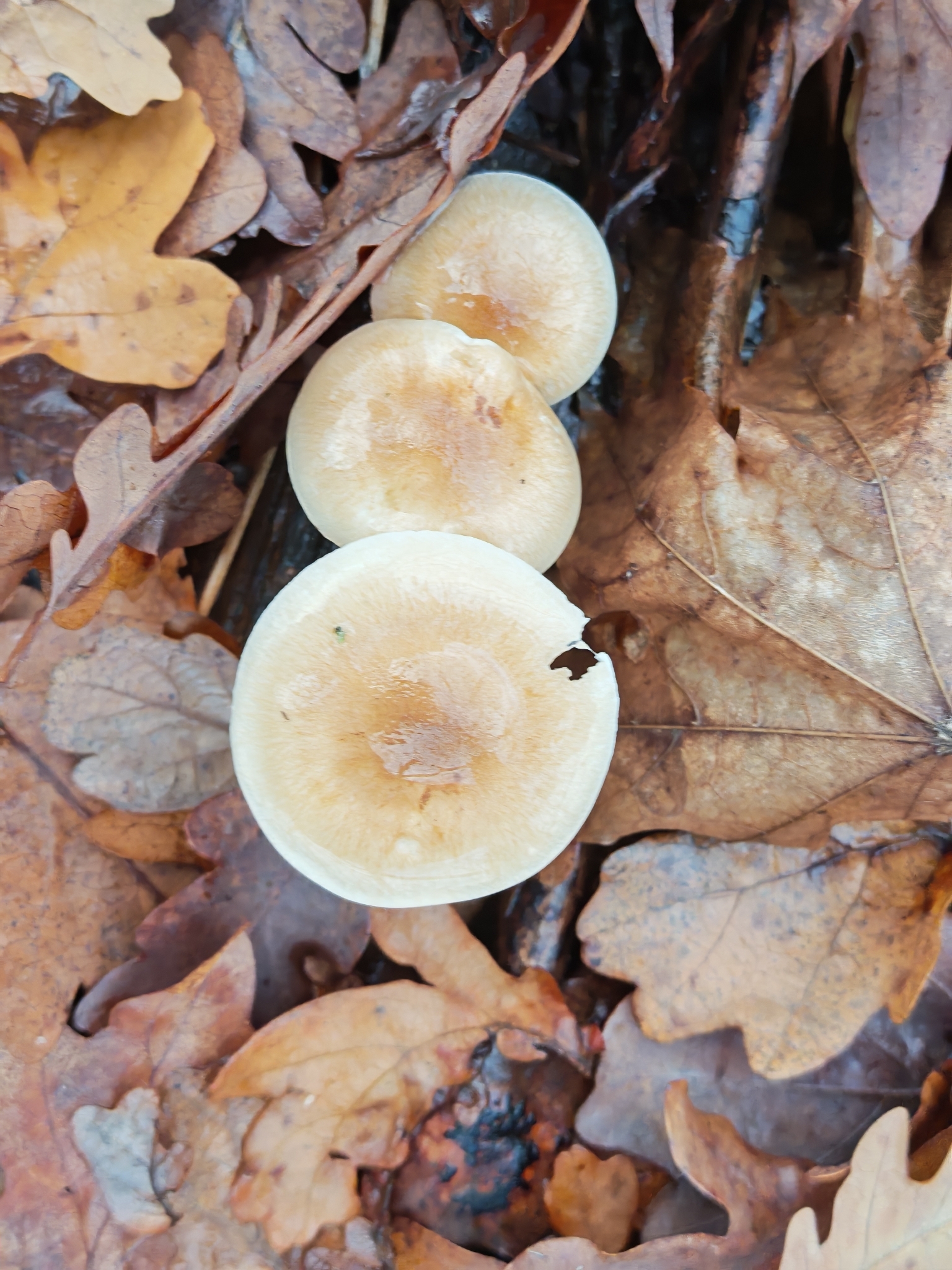 Lamellen: entfernt stehend, dick, fest, weiss, angewachsen leicht herablaufend.