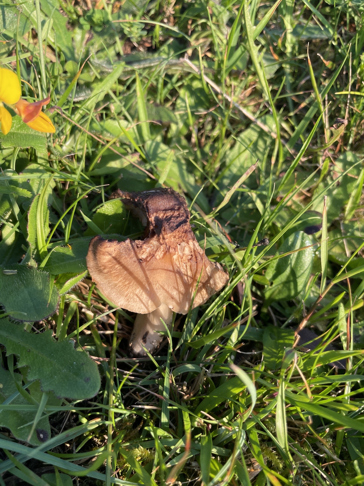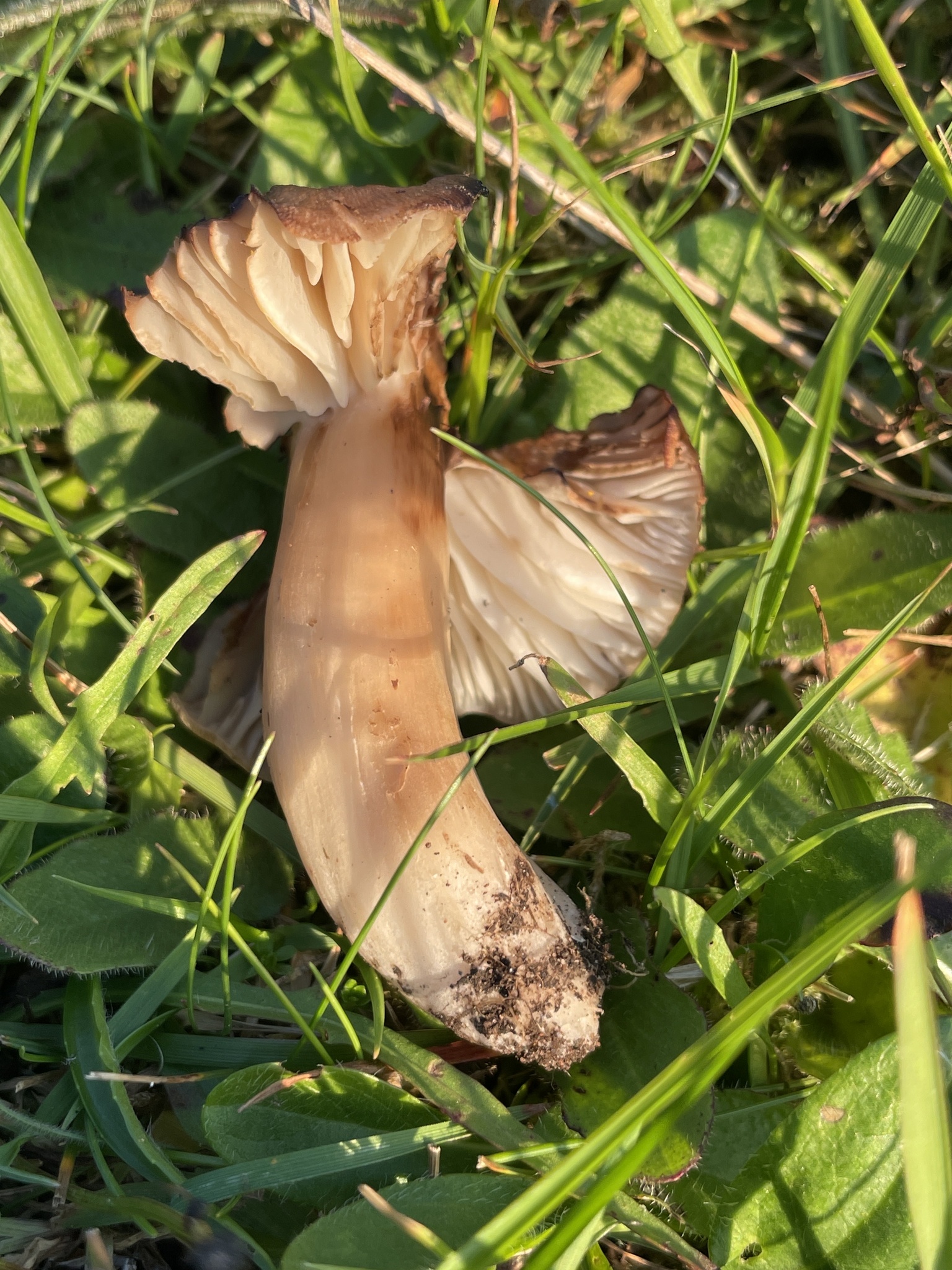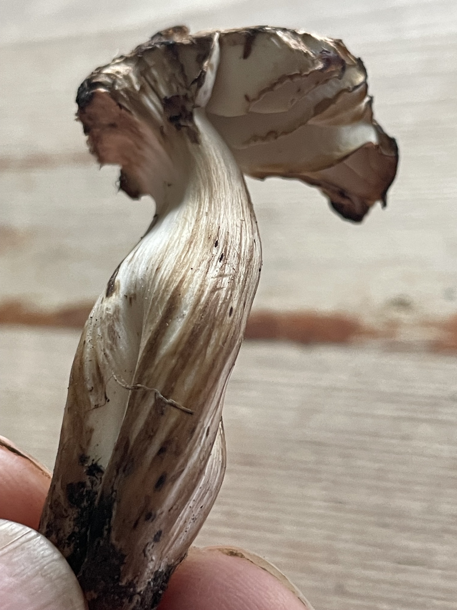 Stiel: blass hellbraun, als der Hut gefärbt, oft gebogen, verbogen und gedellt