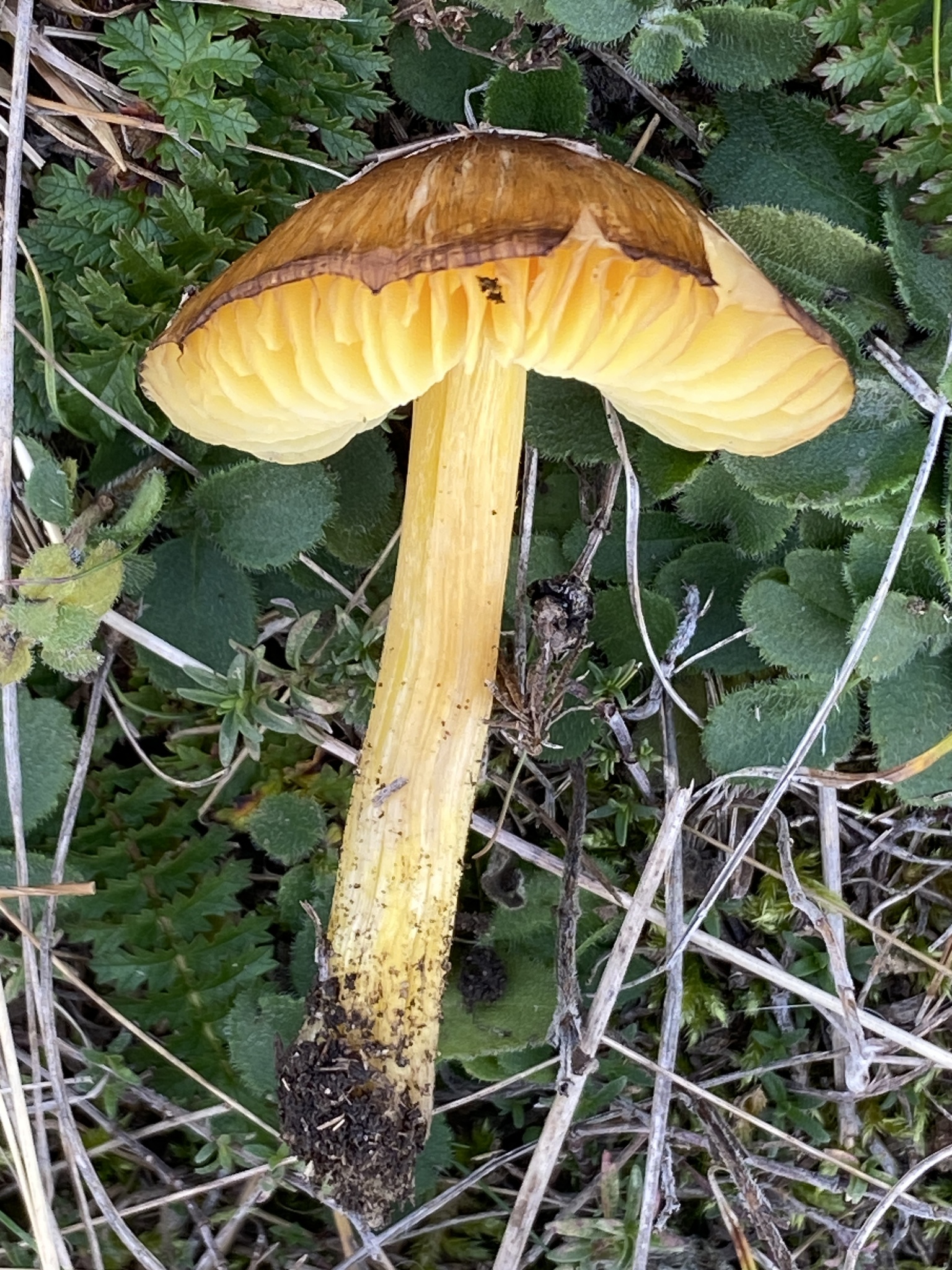 Home > Basidiomycota > Agaricomycetes > Agaricales > Hygrophoraceae > Hygrocybe > Braungelber Saftling