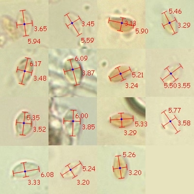 Sporenmaße Länge x Breite: 5.50 - 7.50 x Breite: 3.50 - 5.00 µm
