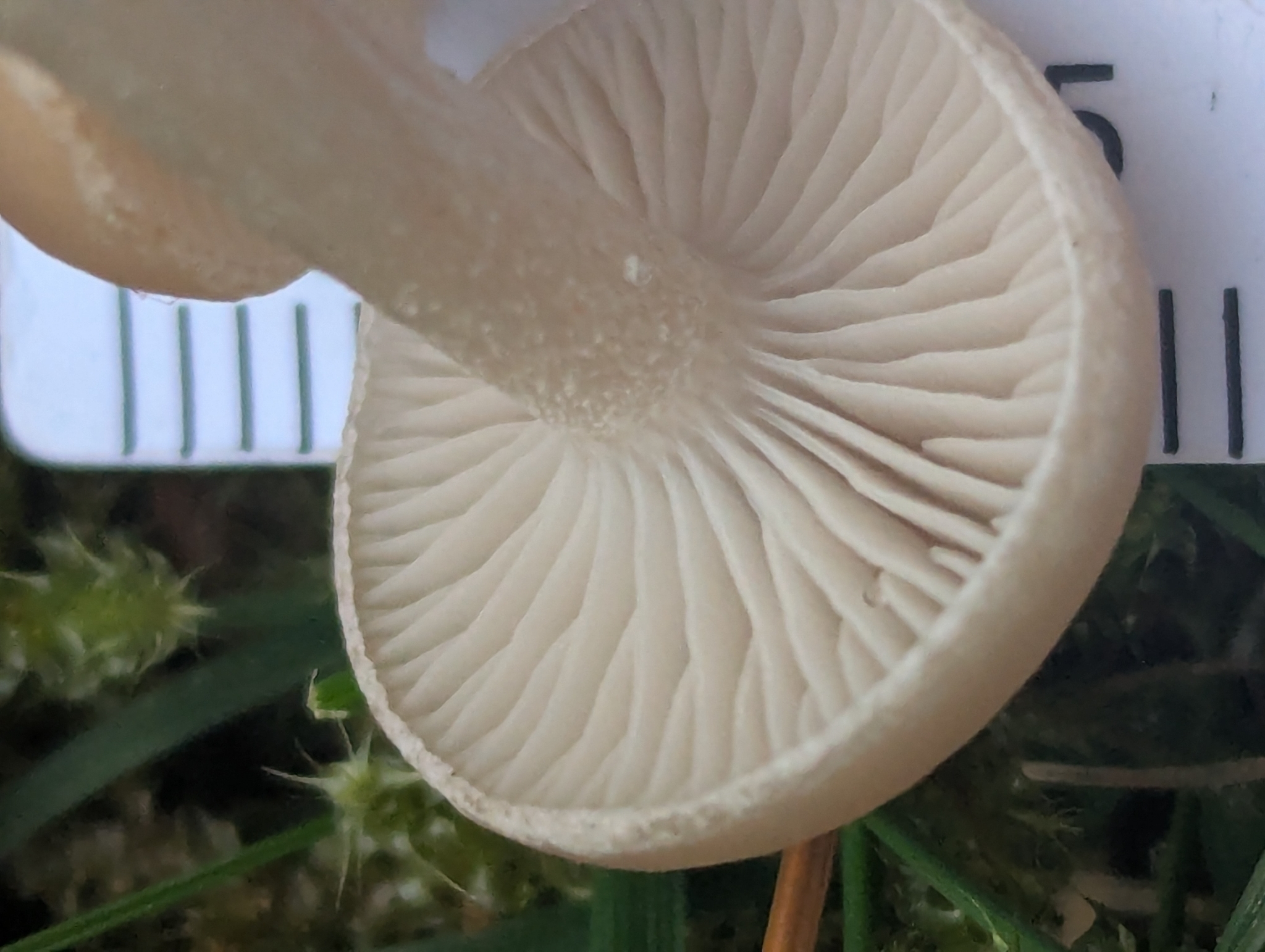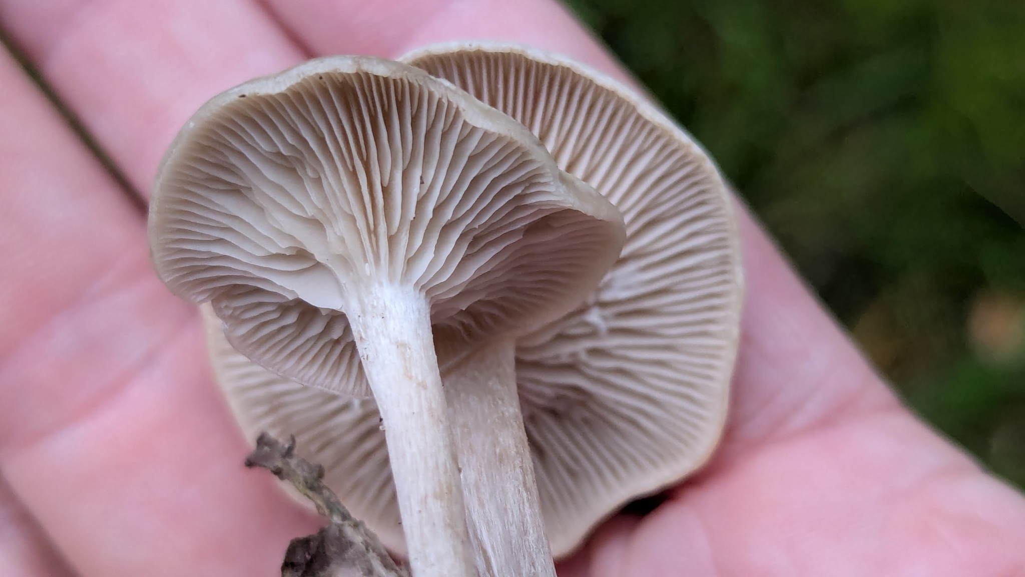 Lamellen: graubraun bis hell beigebraun, gedrängt, herablaufend.