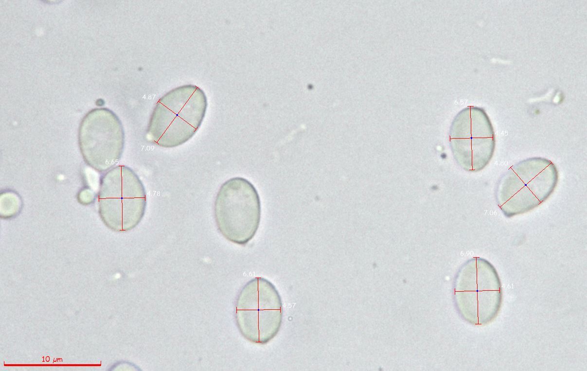 Sporenmaße Länge x Breite: 5.60 - 7.30 x Breite: 3.10 - 4.10 µm