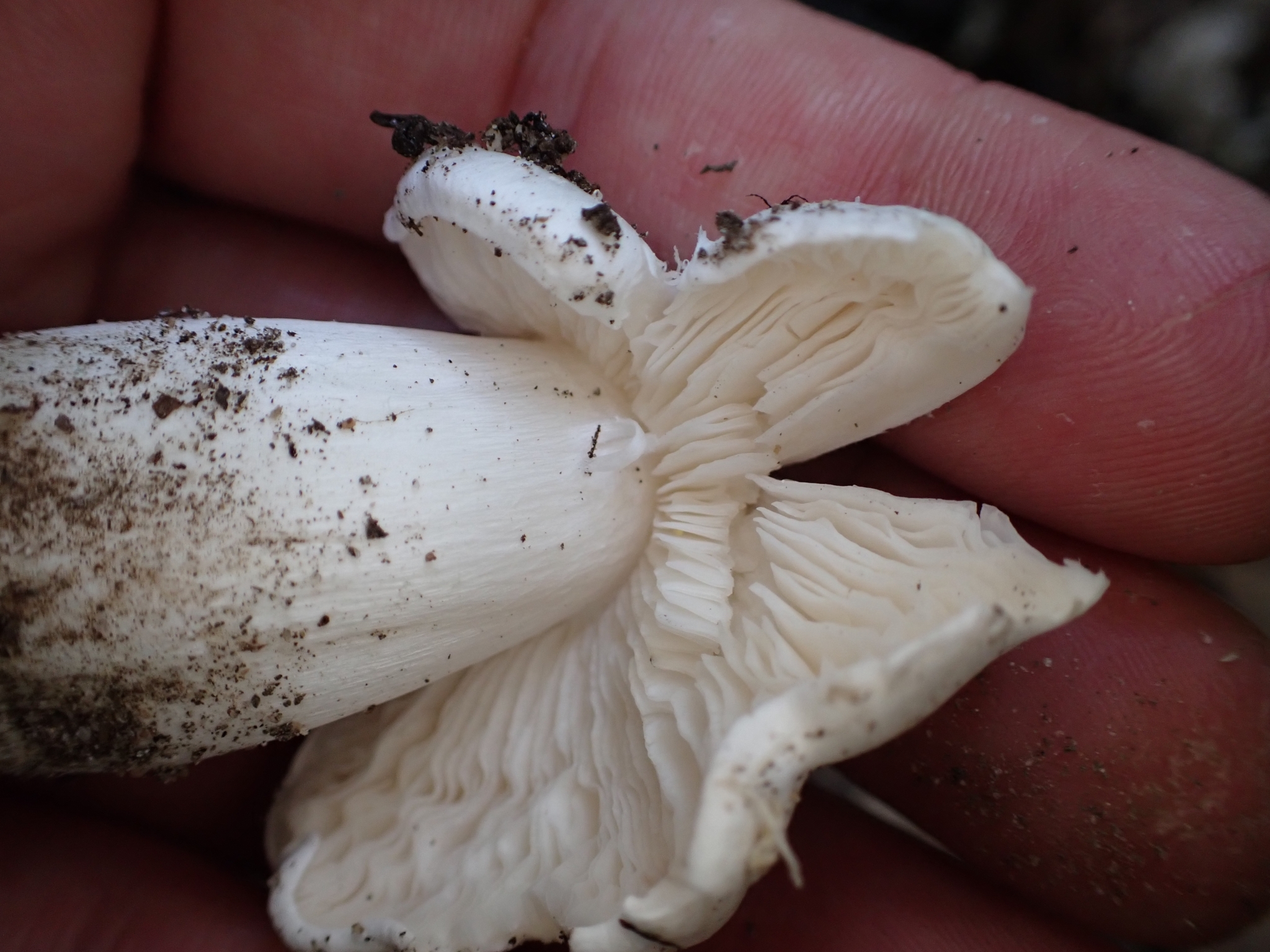 Lamellen: ausgebuchtet, gedrängt, dünn, weiss, Schneiden manchmal mit feinem Zahn.