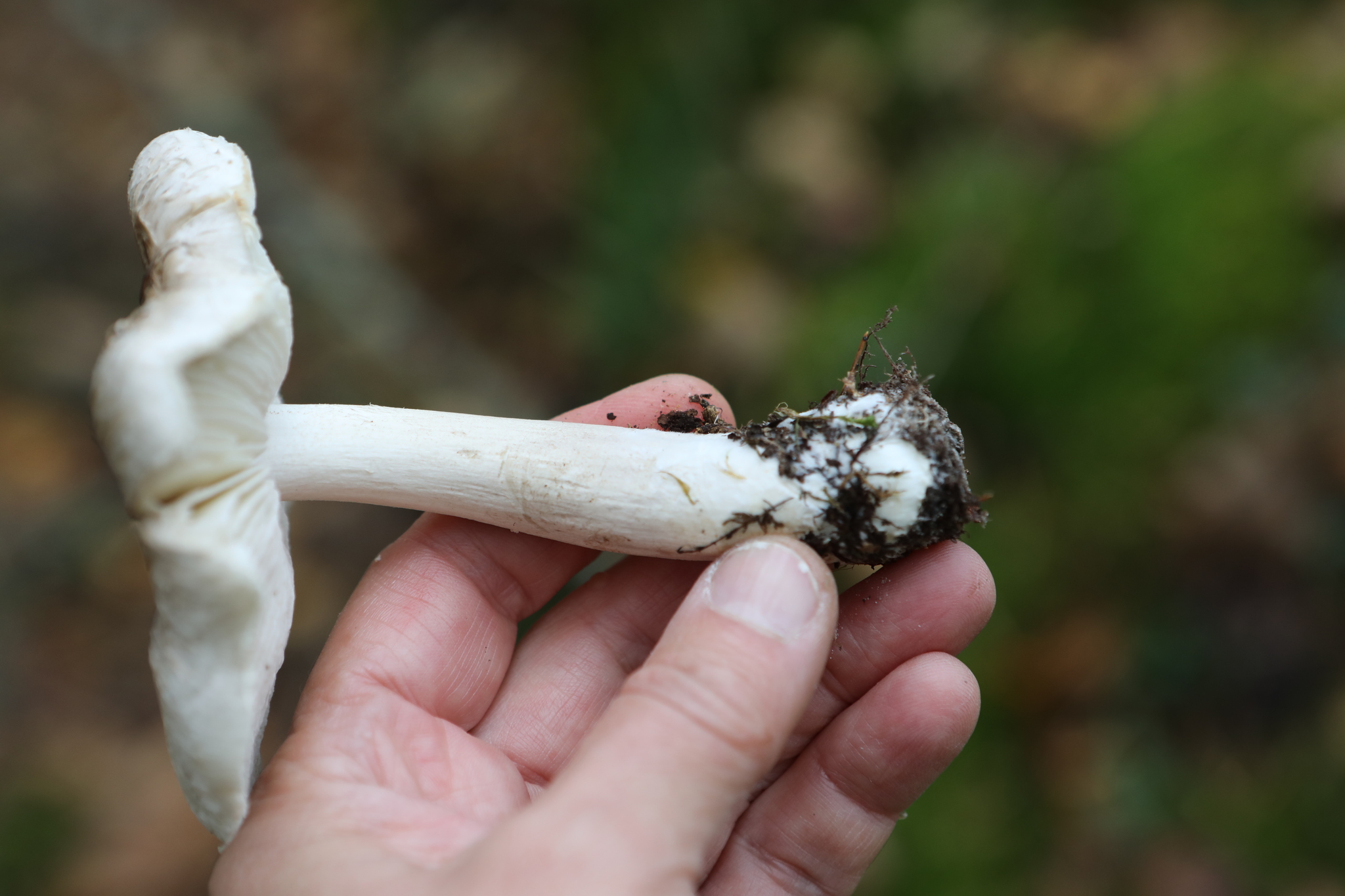 Stiel: voll, kräftig, weisslich bis blass grau, faserig, Basis u.U. leicht verdickt.
