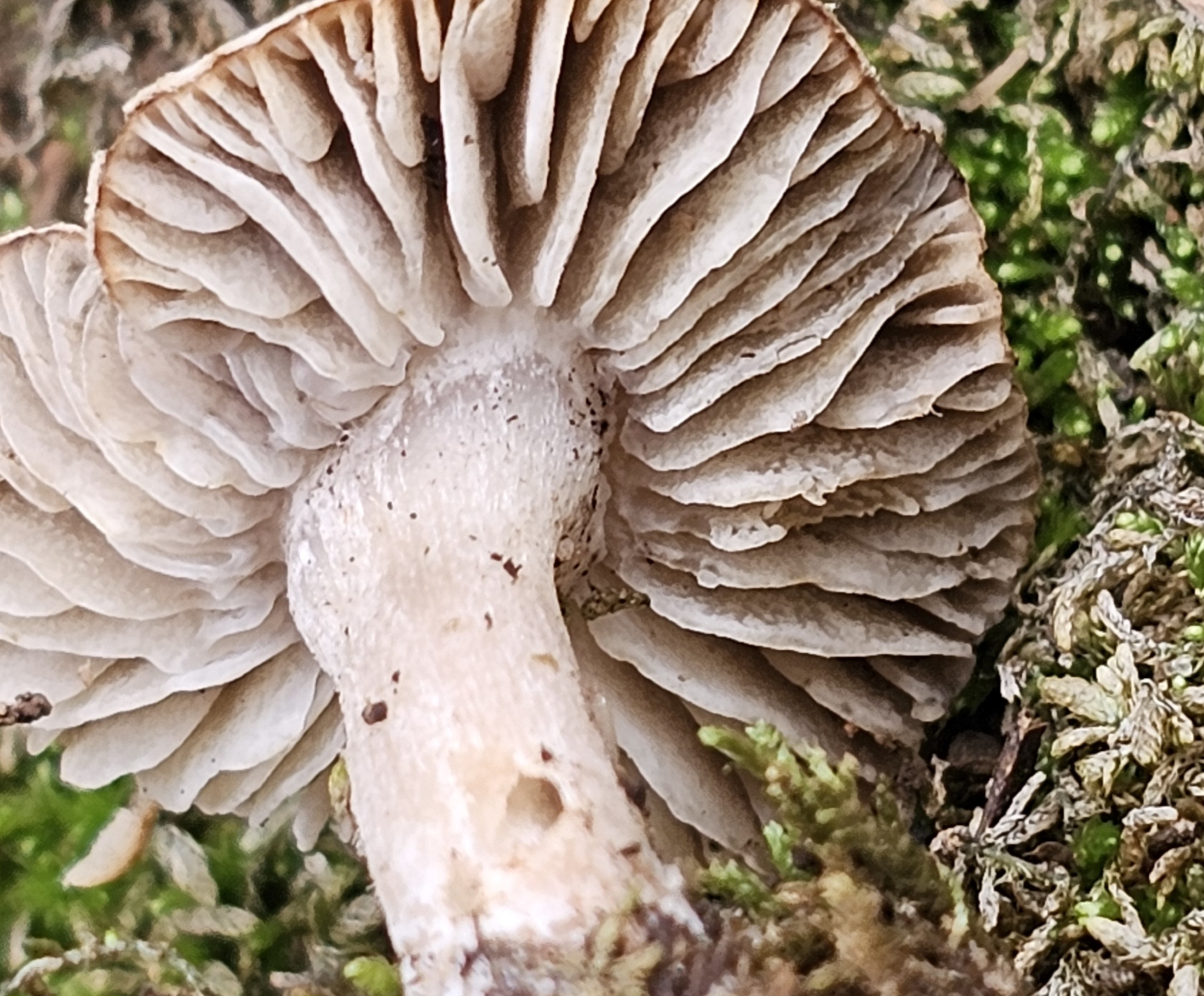 Lamellen: angeheftet, ziemlich entfernt stehend, jung weisslich, dann aschgrau.
