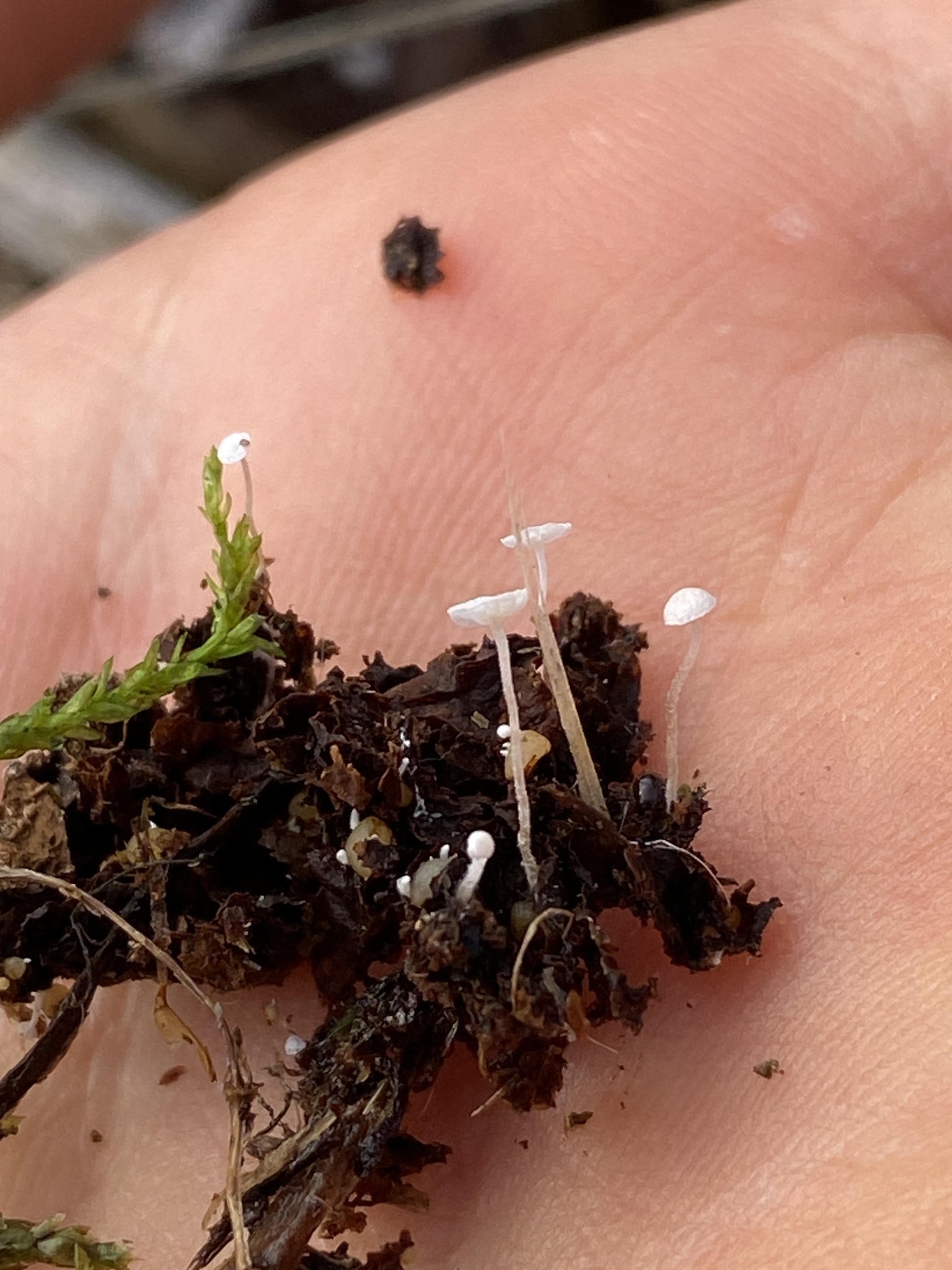 Hut: bald flach, mit verschwindender Papille, weisslich, Mitte ocker.