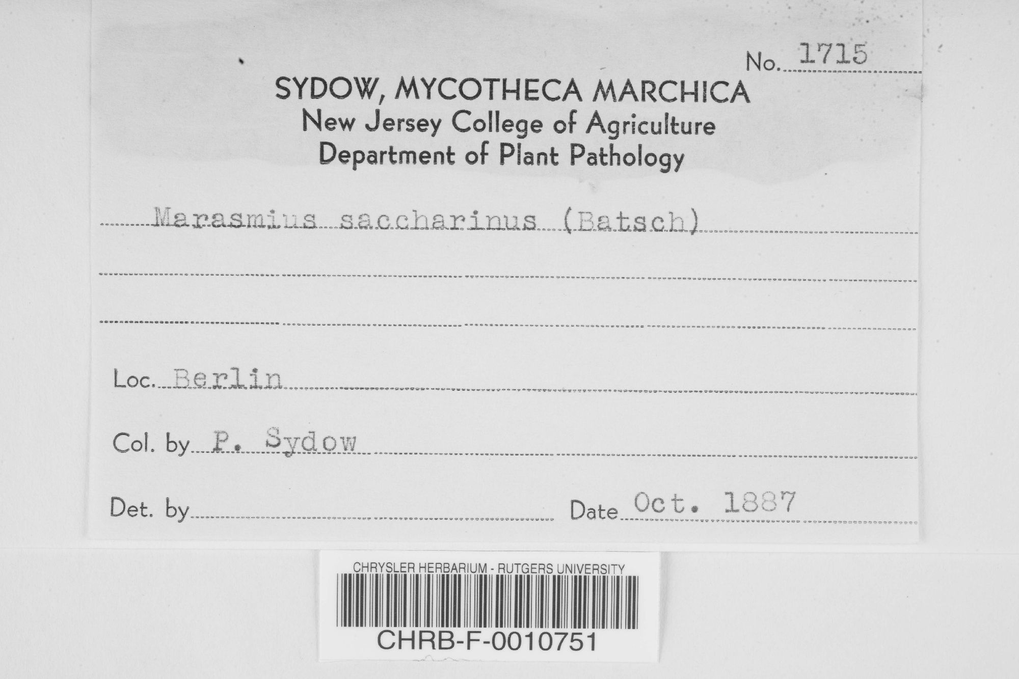 Chrysler Herbarium - Mycological Collection (CHRB-)