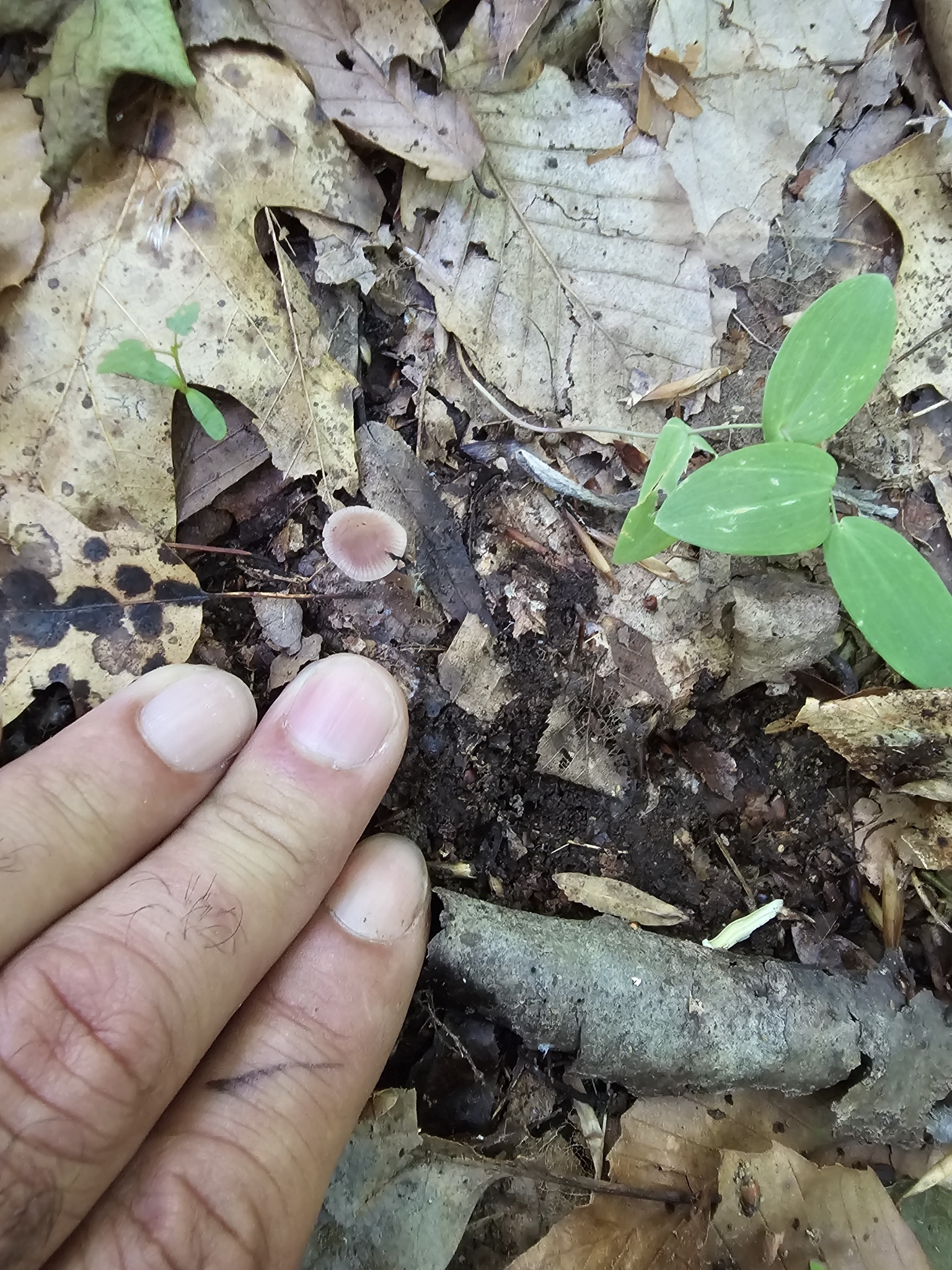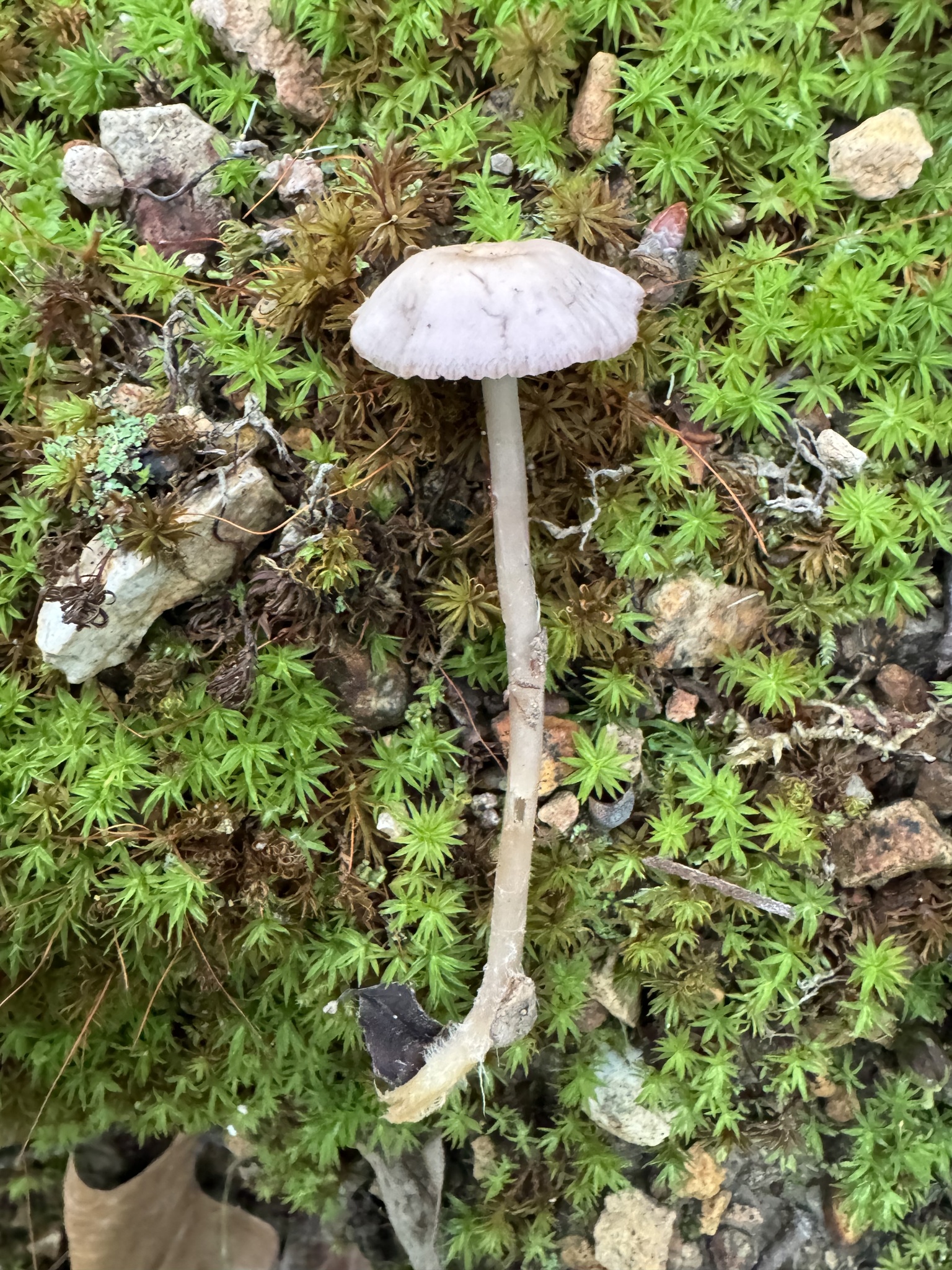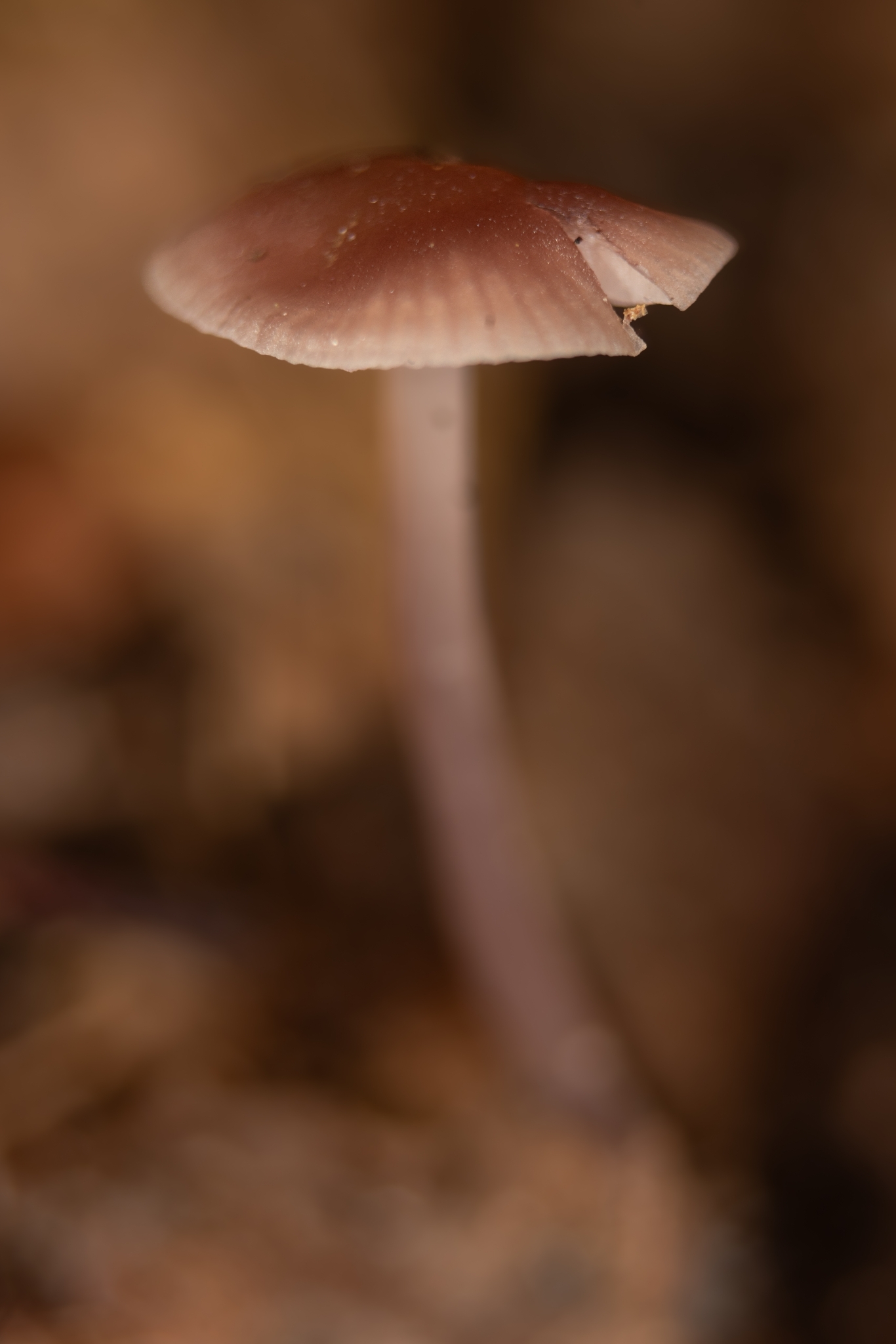 Hut 1—2 cm im Durchmesser, gewölbt, später abgeflacht und am Rand nach oben gebogen; blass gelblich mit violettem Schimmer, heller und gerieft am Rand.Stiel 30—50x2—3 mm; blass fleischfarben.Fleisch bräunlich; dünn am Rand; Geschmack mild oder leicht ranzig, Geruch rettichartig.Lamellen horizontal, angewachsen mit herablaufendem Zahn; weißlich, violett überhaucht.Sporen 5—7x3.5—4.5µ, pfeifenförmig; nicht amyloid.Sporenabdruck weiß.Cheilozystidien zahlreich, zylindrisch mit abgerundeter Spitze, dünnwandig.