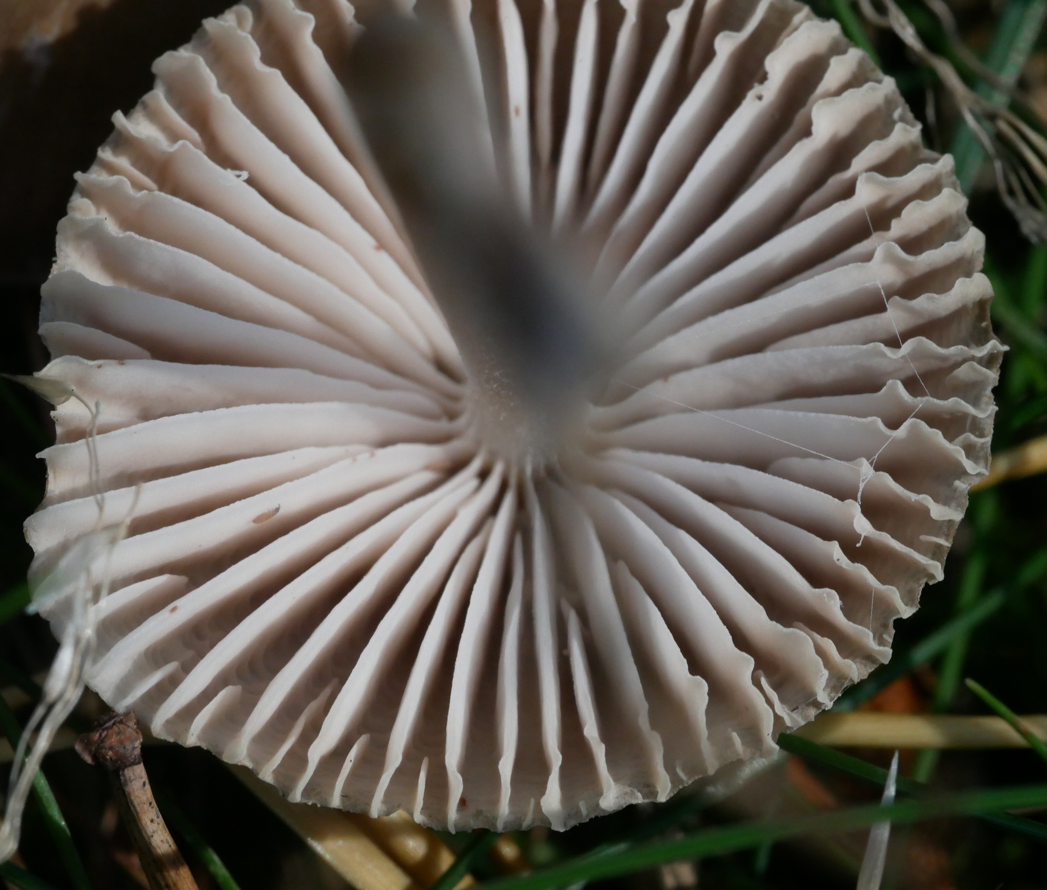 Lamellen: dick, weiss bis schmutzigweiss, später rostfleckig, ausgebuchtet angewachsen, mit Zahn etwas herablaufend.