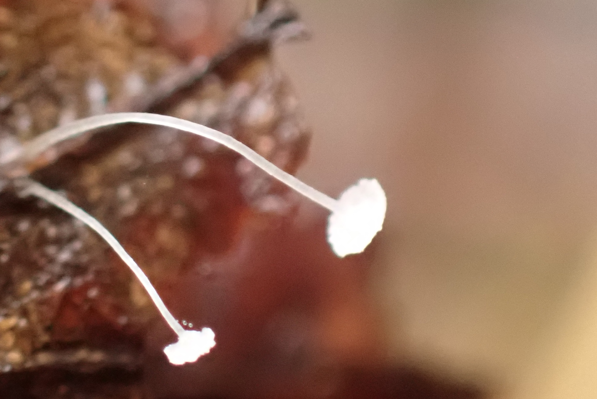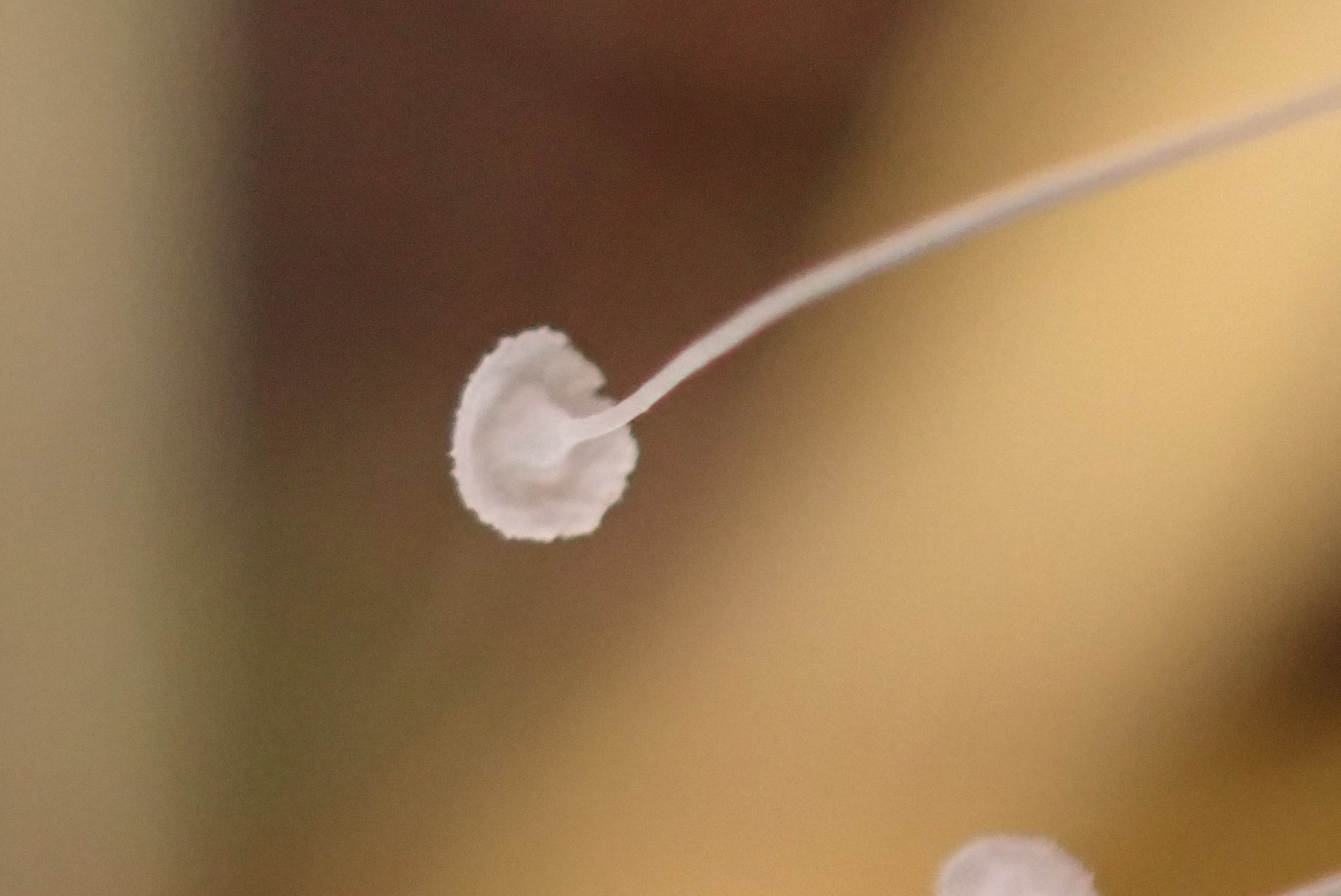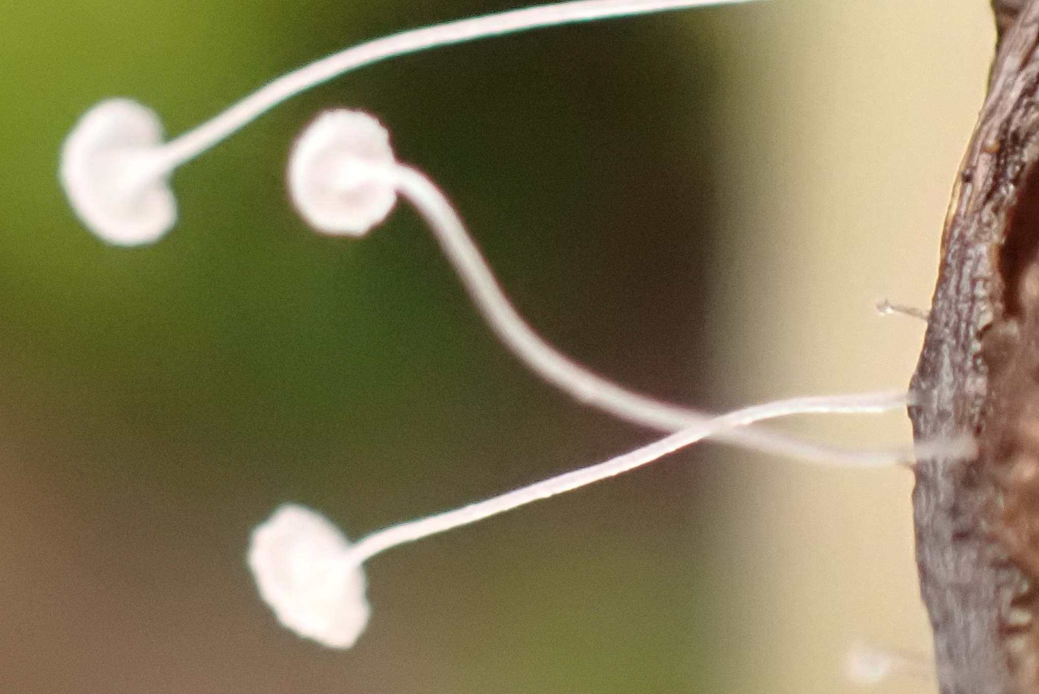 Stiel: fadenförmig dünn, röhrig, zäh, weiss, Basis weiss flockig, sonst kahl.