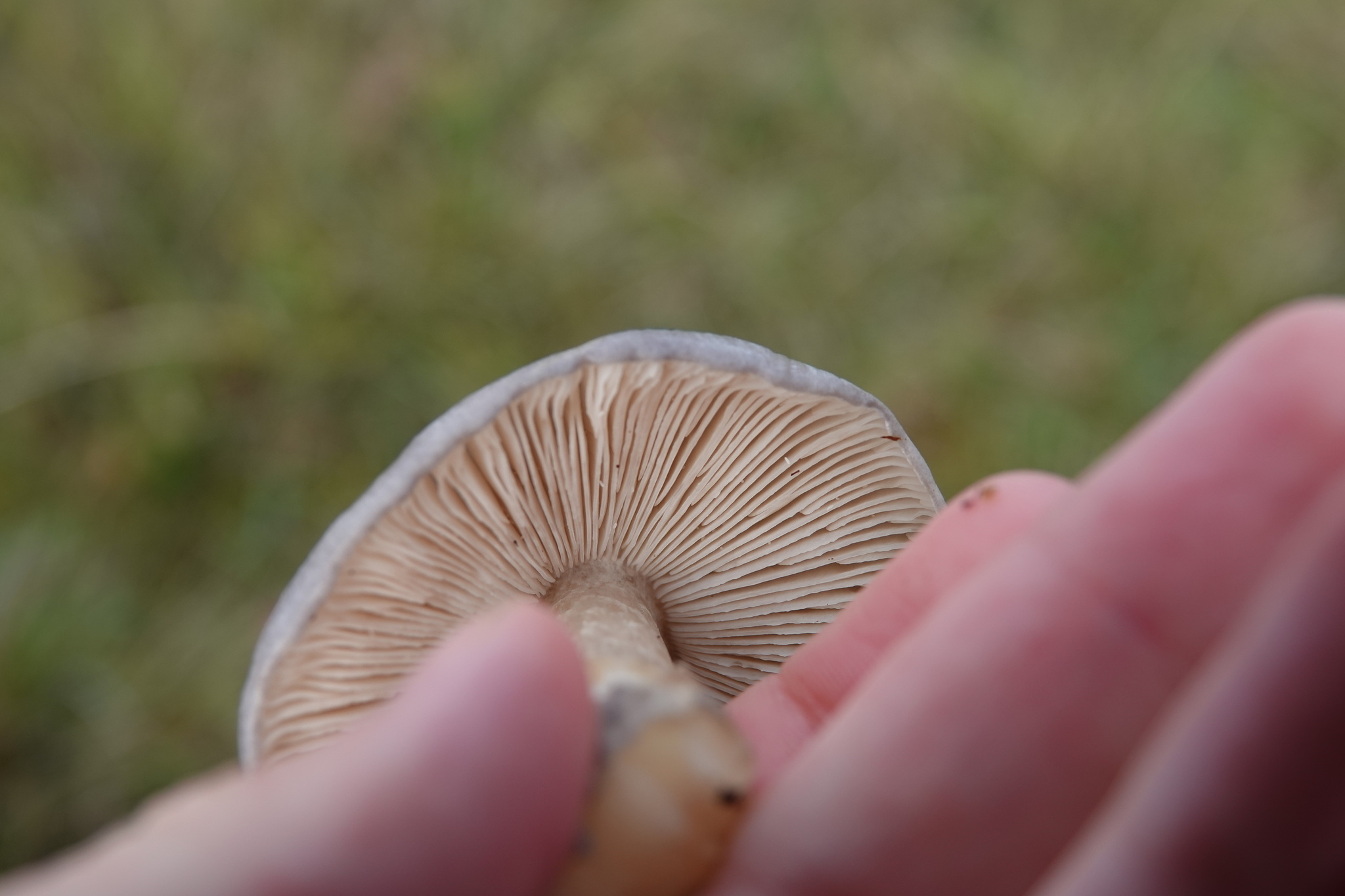 Lamellen: gedrängt, gekerbt, weiss, später rosa, ausgebuchtet angewachsen.