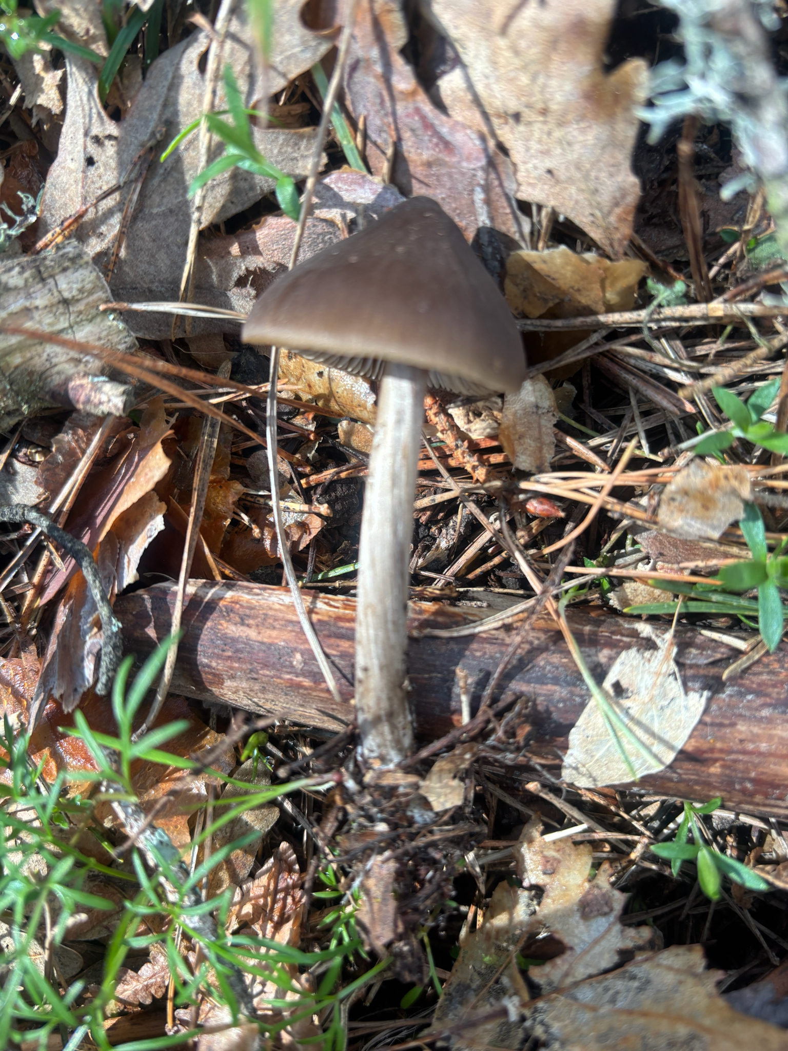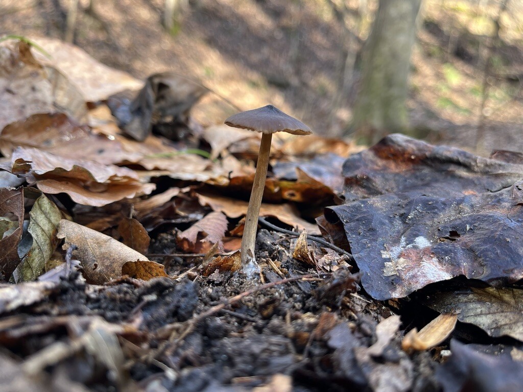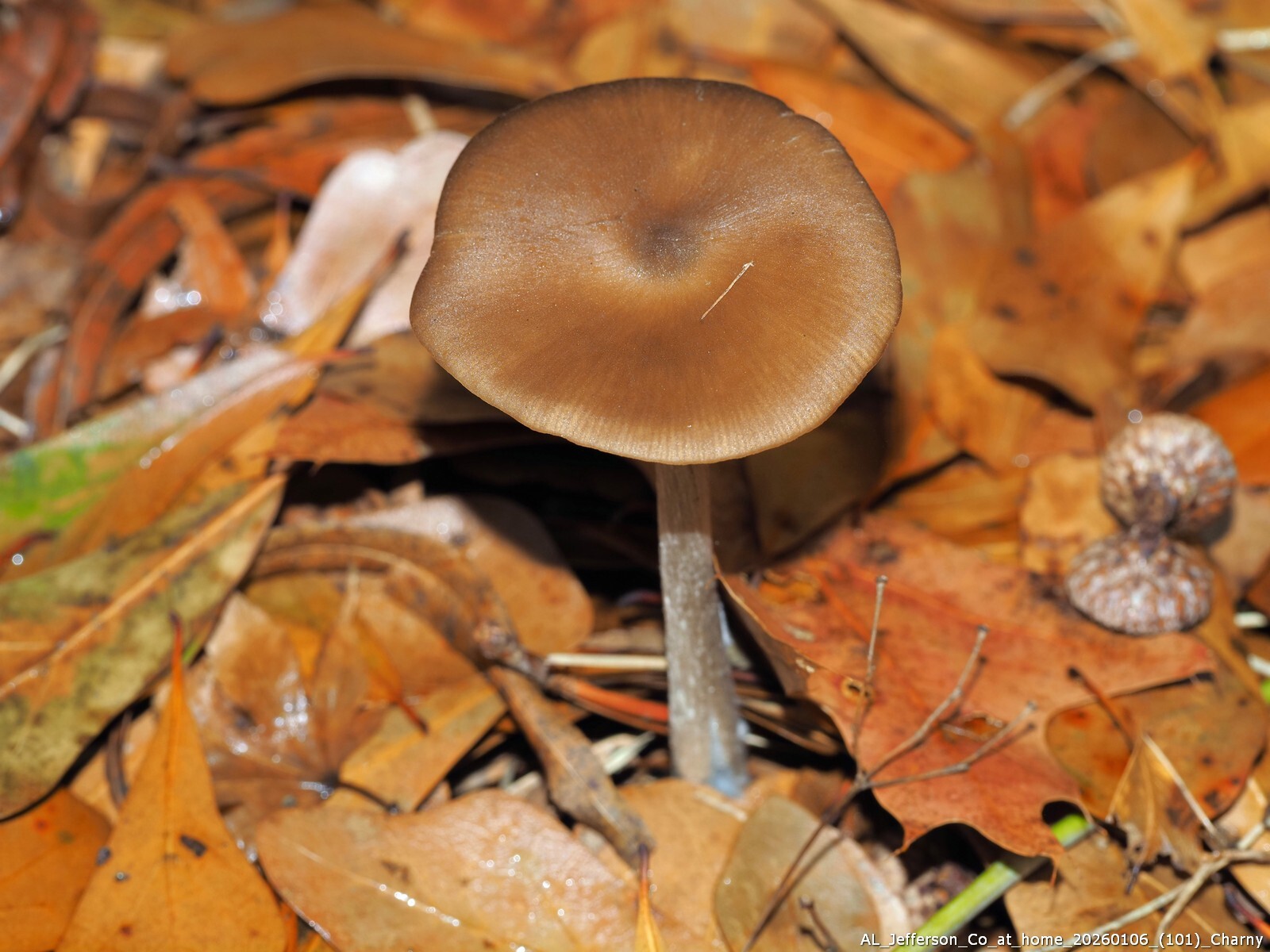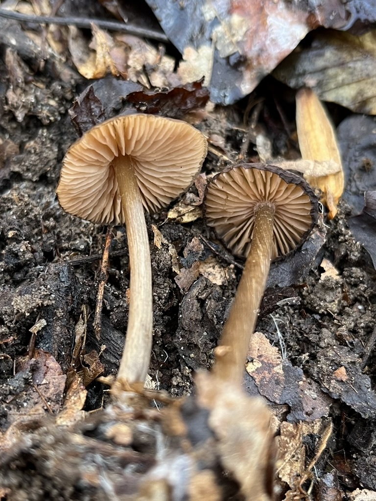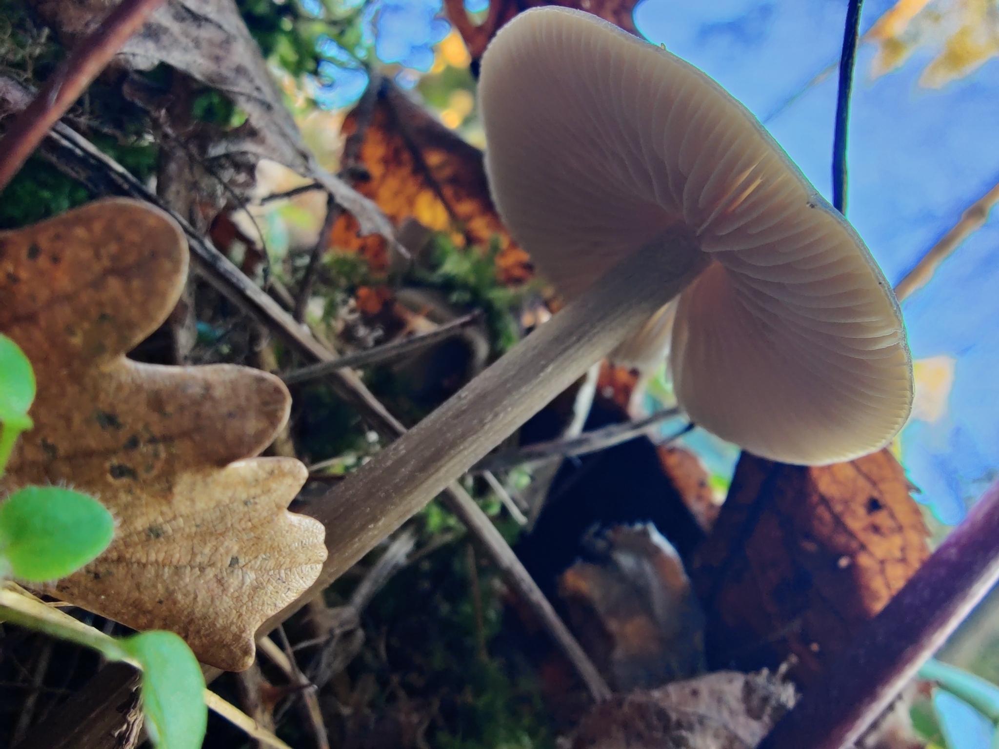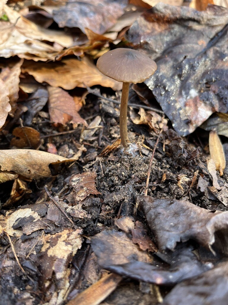 Stiel: röhrig hohl, schlank, zerbrechlich, wie der Hut gefärbt, relativ lang, gebrechlich, zur Basis weiss filzig.