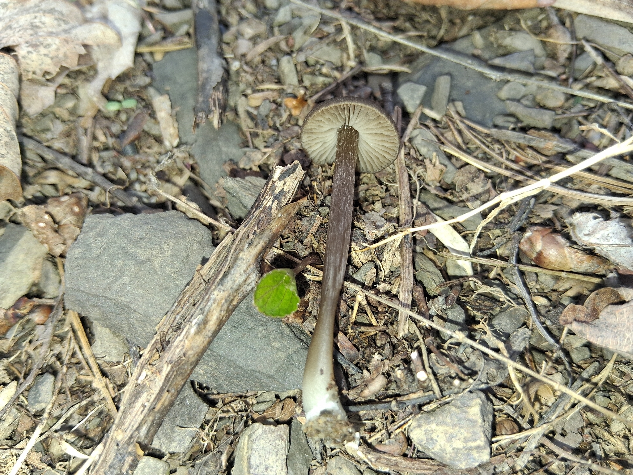 Stiel: röhrig, blass graubräunlich, faserig, oft verdreht, gebrechlich