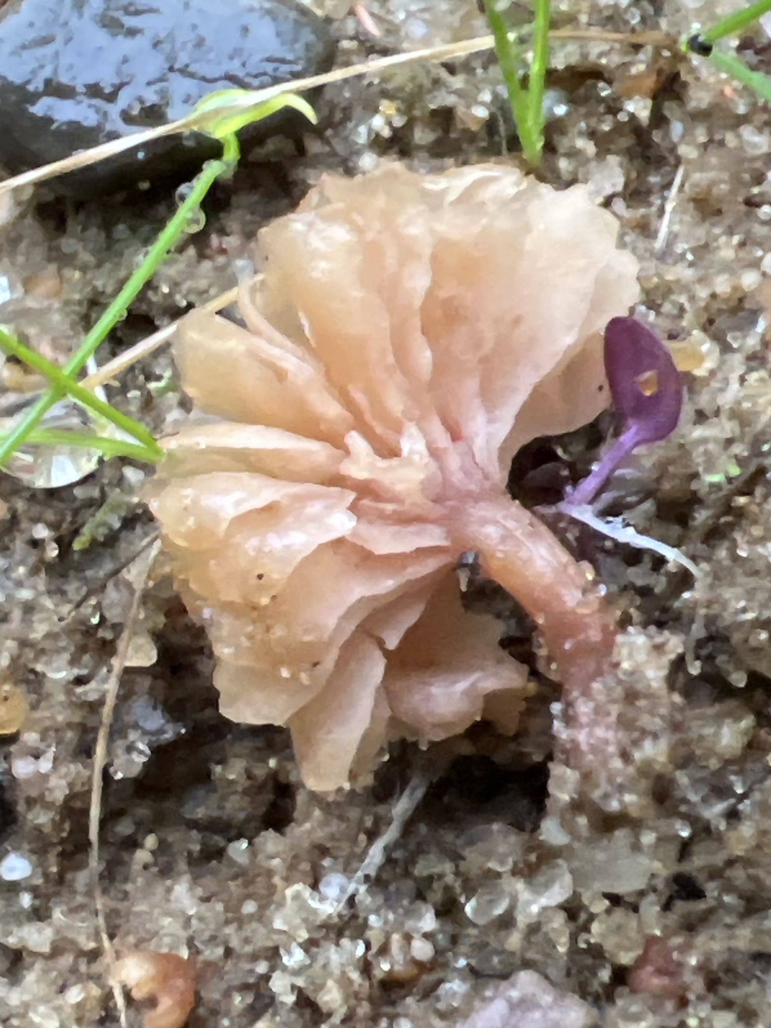 Stiel: schwarzbraun, fast wie der Hut gefärbt, kahl, nackt, röhrig, Basis weiss filzig.