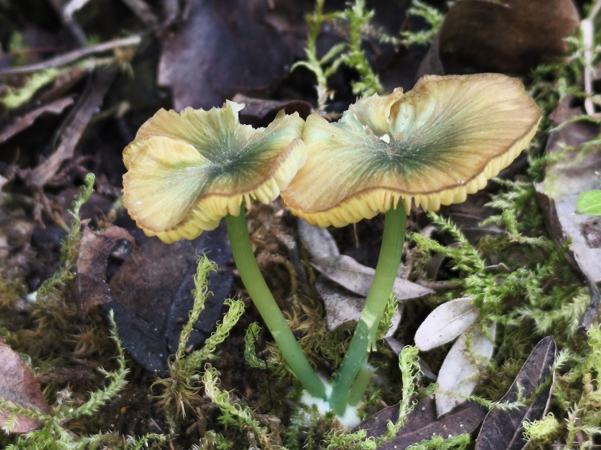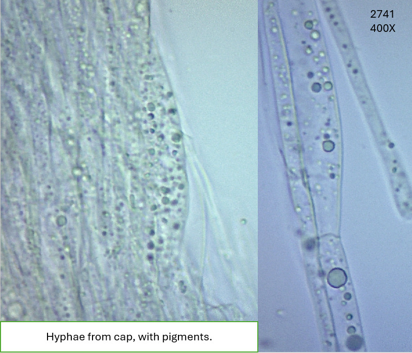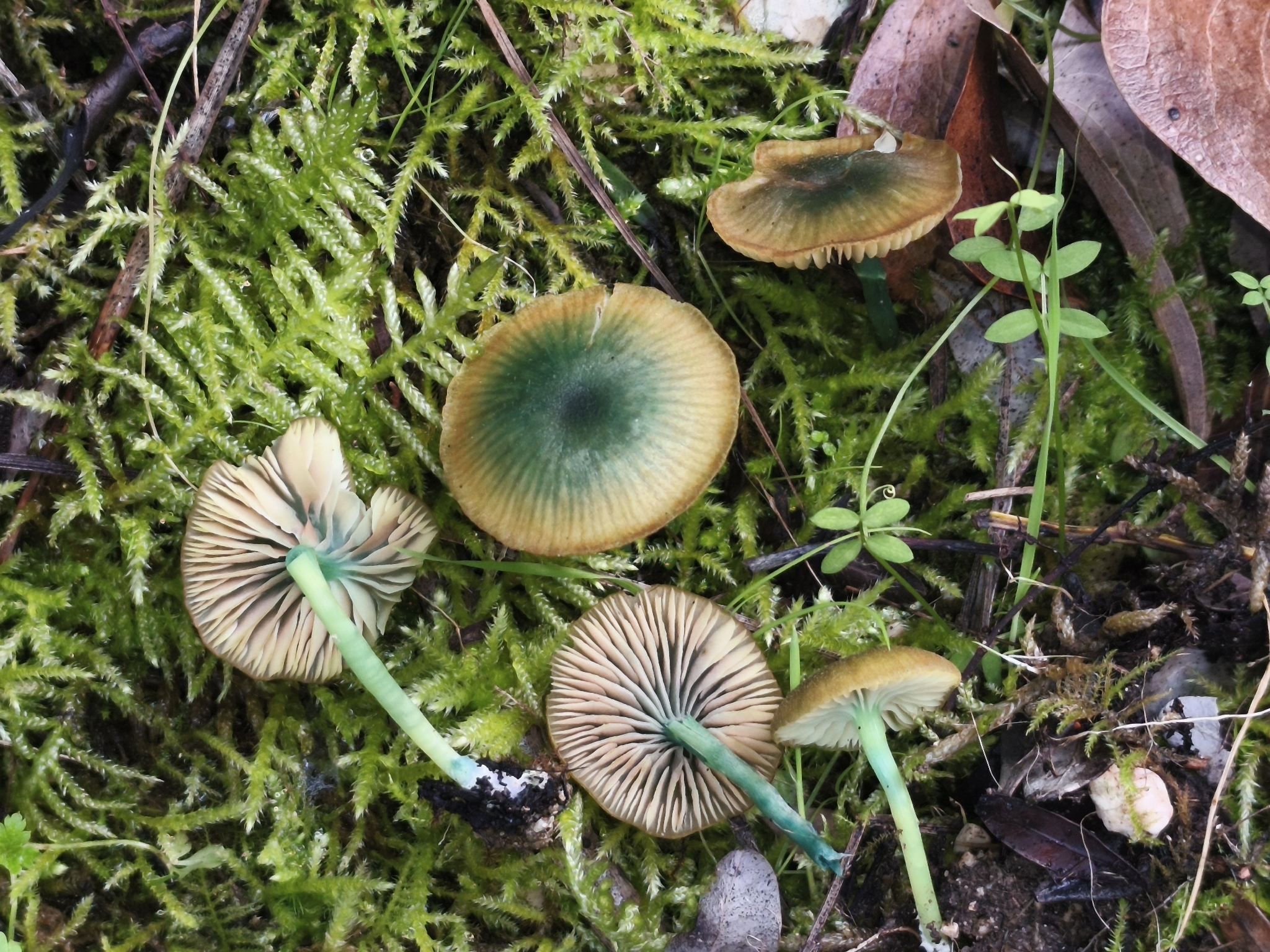 Lamellen: angewachsen, leicht ausgebuchtet bis herablaufend, ziemlich entfernt stehend, weisslich bis blassgrün, später rosa bis braunrosa.