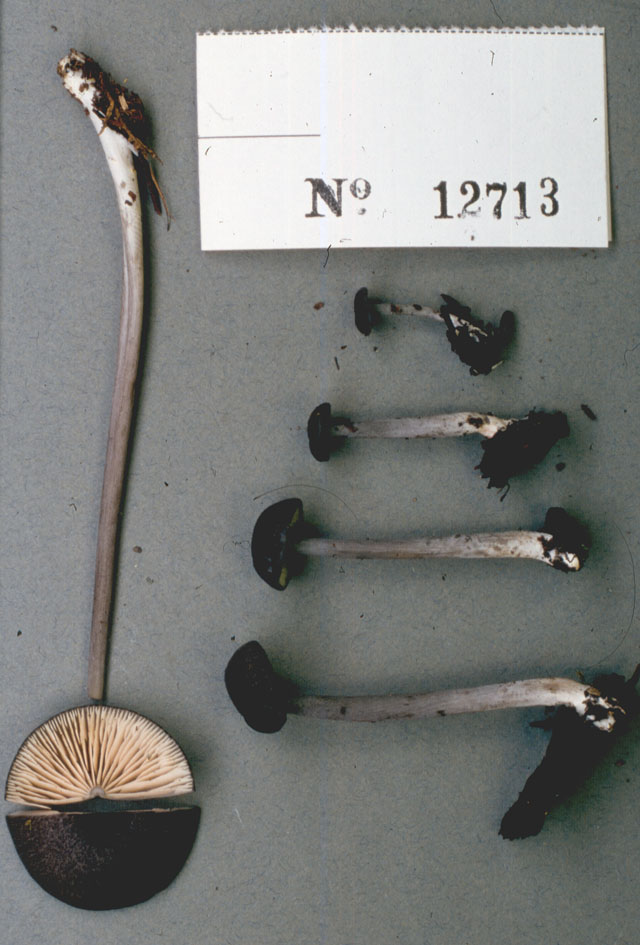 Hut: jung kegelig bis halbkugelig, dann flach niedergedrückt, nicht riefig, glänzend, genabelt, bald schwärzlich, glatt bis schwach eingewachsen schuppig-filzig.