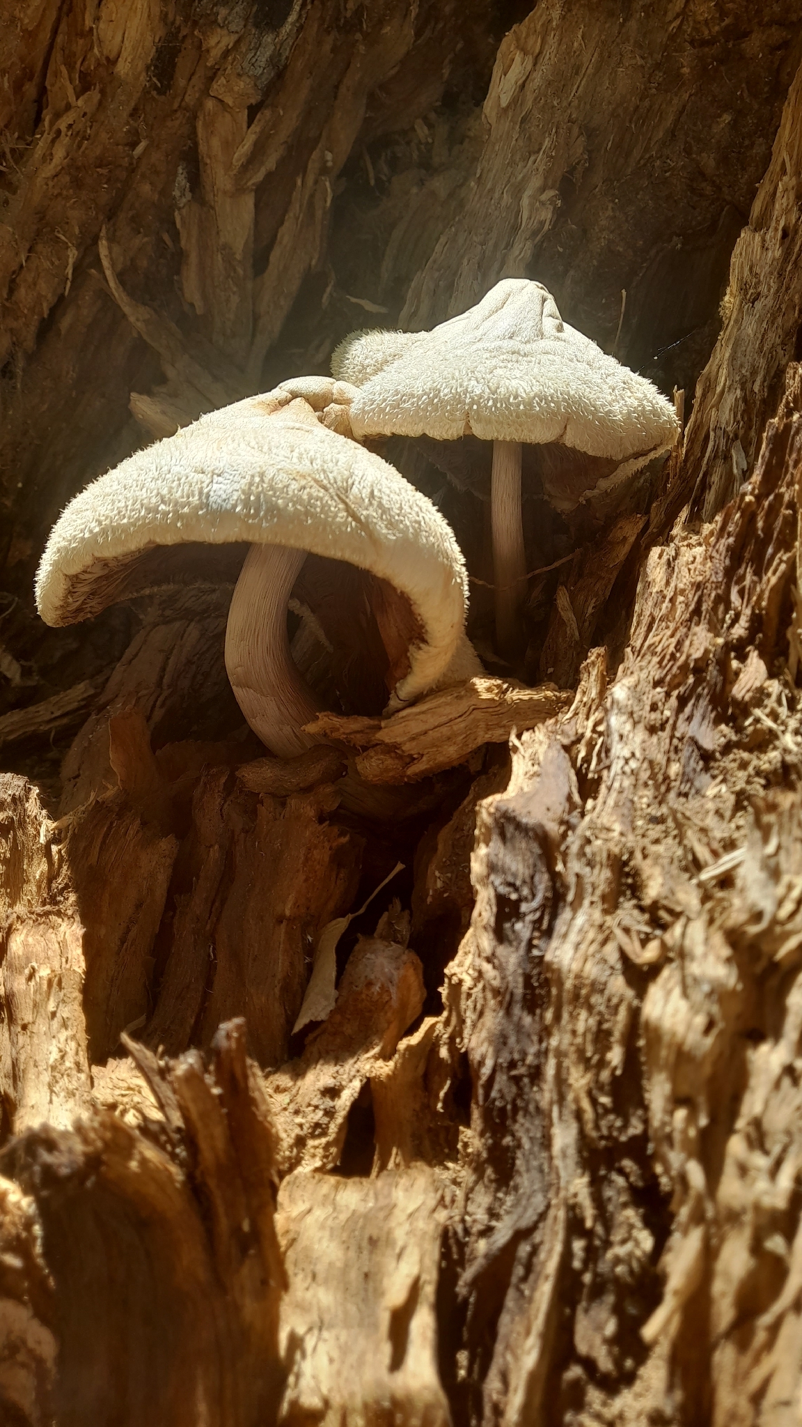 Hut: kegelig-glockig, später gewölbt bis ausgebreitet, im Alter fast flach, trocken, seidig-wollig, später faserig-schuppig, weiss bis cremefarben.