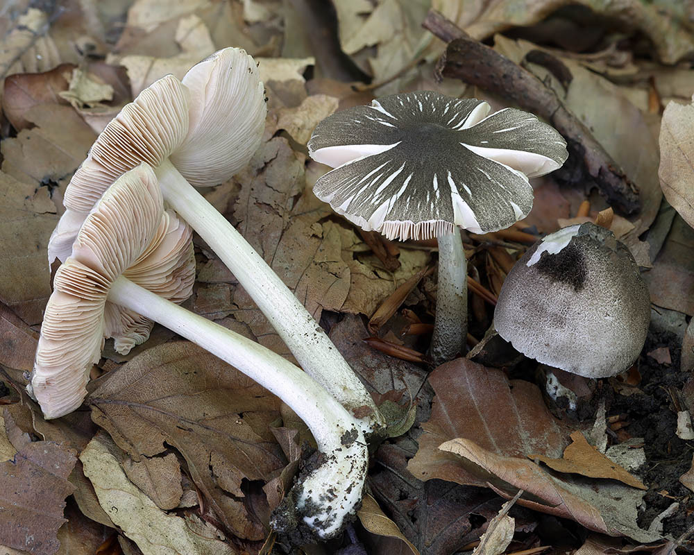 Lamellen: frei bis angeheftet, schmal, blassgrau, später rosa bis bräunlichrosa.