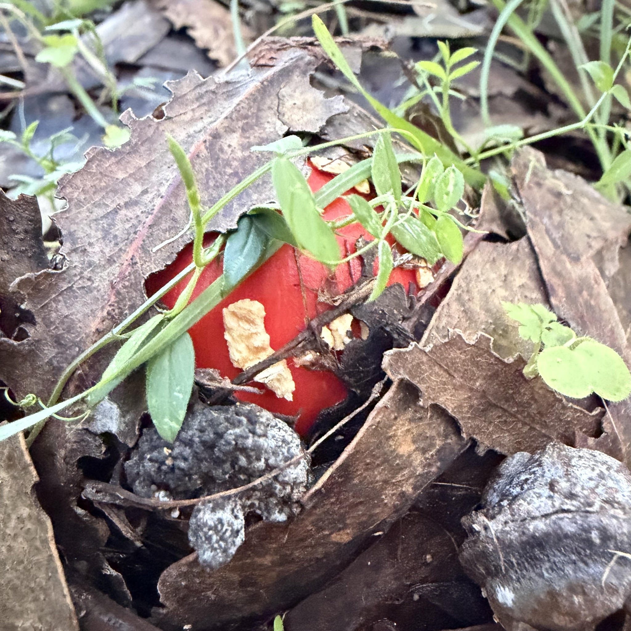 Hut: Hut 8-16 cm, jung kugelig mit weisser, würfelig eingerissener Hülle, später ausgebreitet gewölbt, orange bis rot, meist mit konzentrischen, weissen Hüllresten, Rand gerieft.
