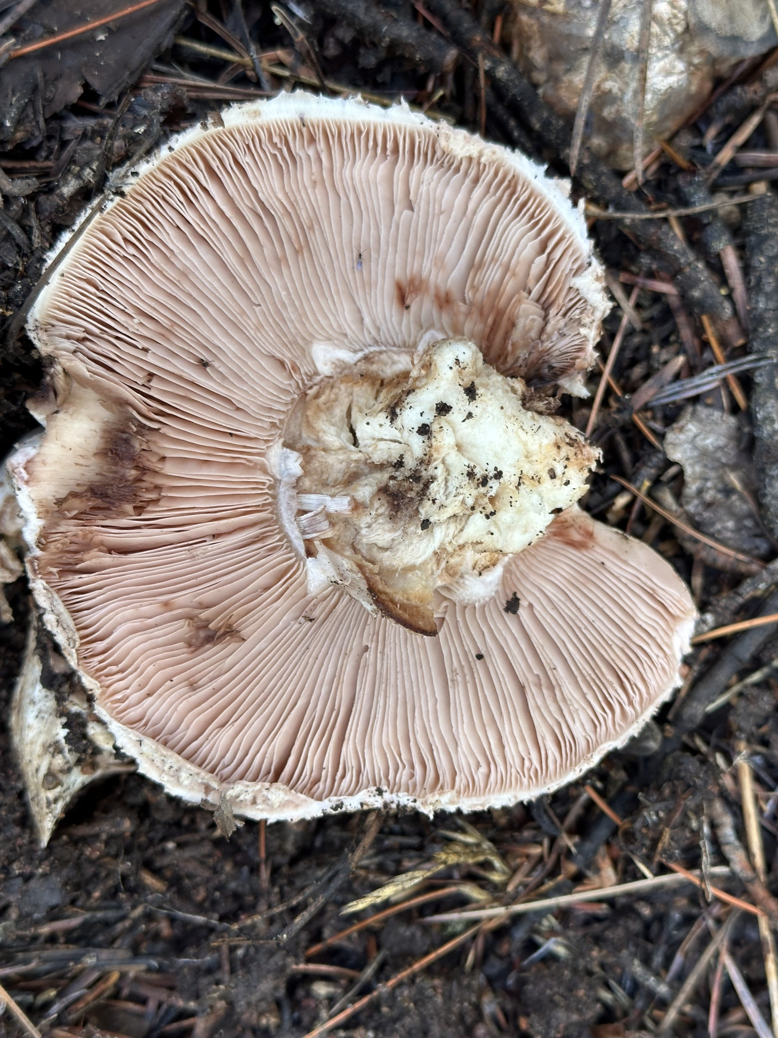 Lamellen: frei, ca. 5 mm breit, matt rosa, später schwarzbraun.