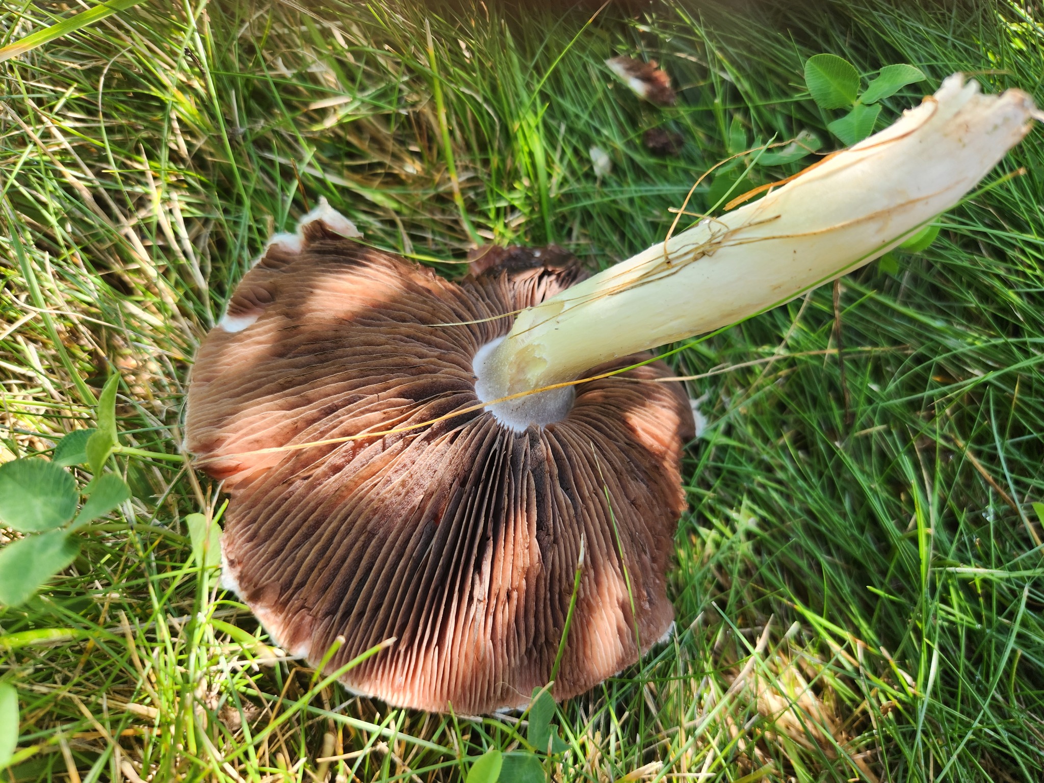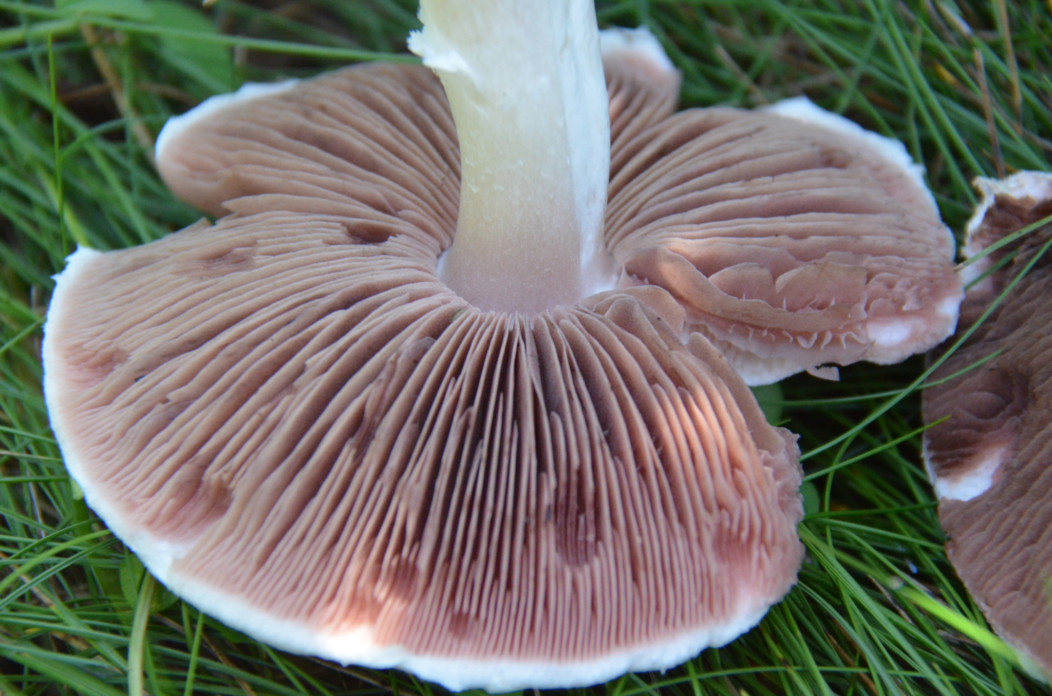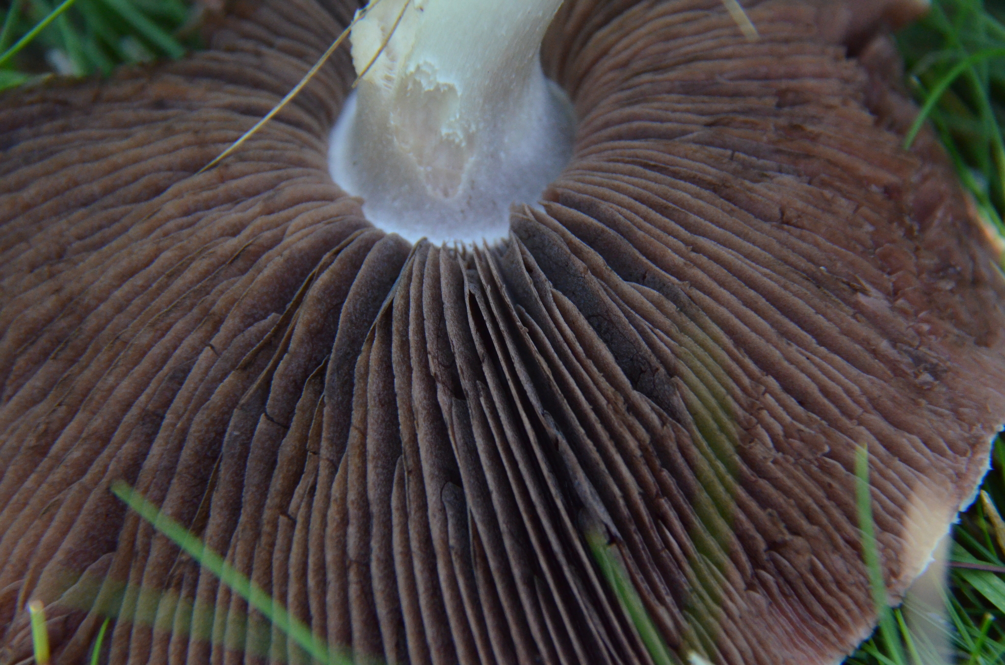 Lamellen: frei, dicht stehend, lebhaft rosa, später dunkelbraun, Schneiden gleichfarbig.