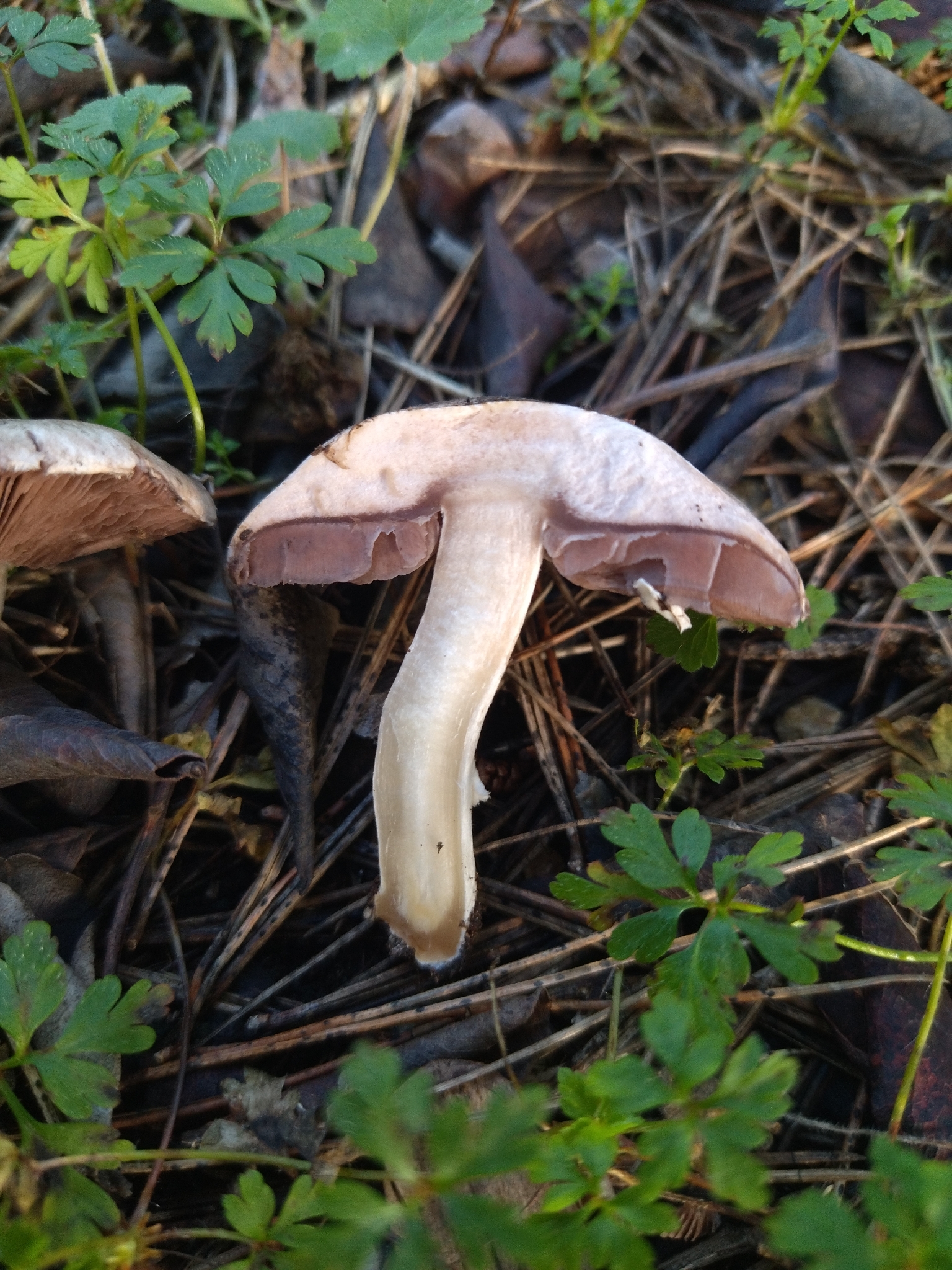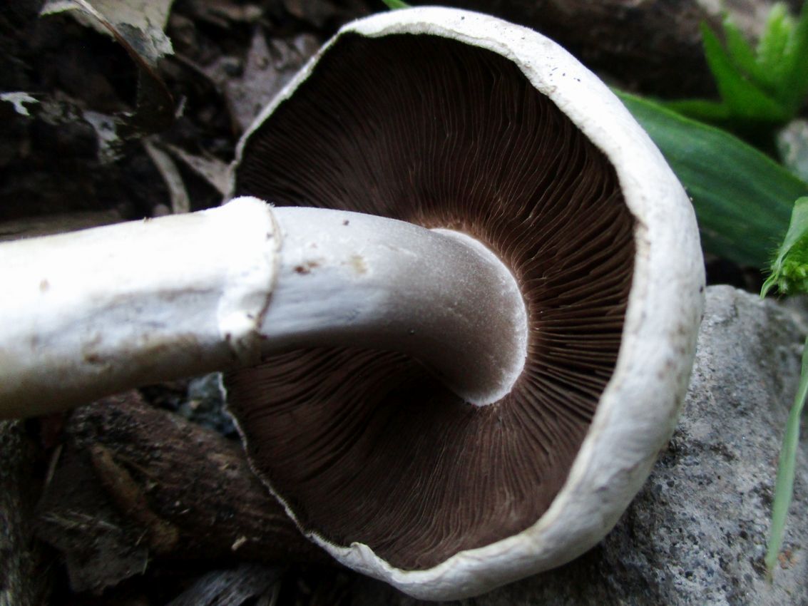 Lamellen: jung rosa, später rötlichviolett, alt braunschwarz.