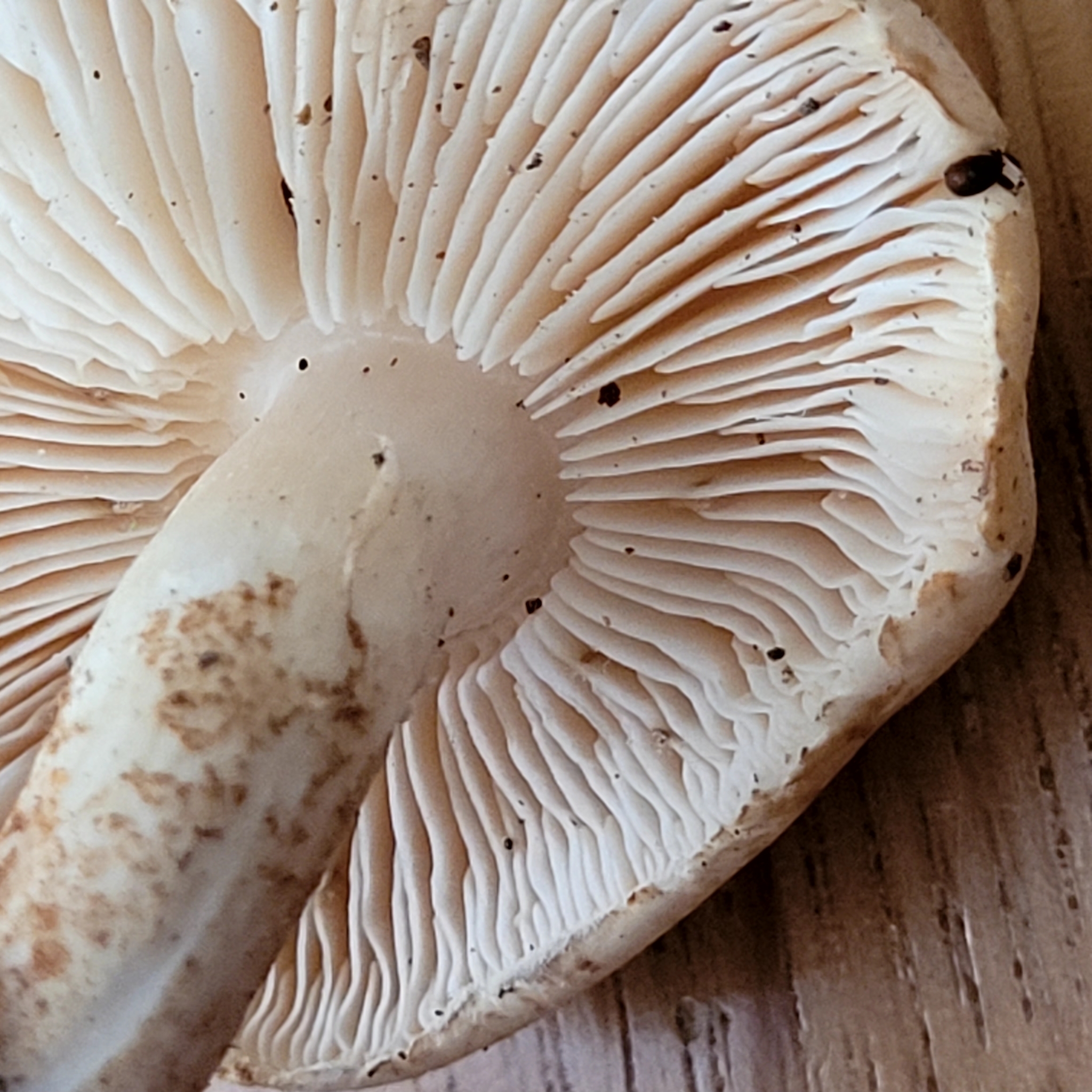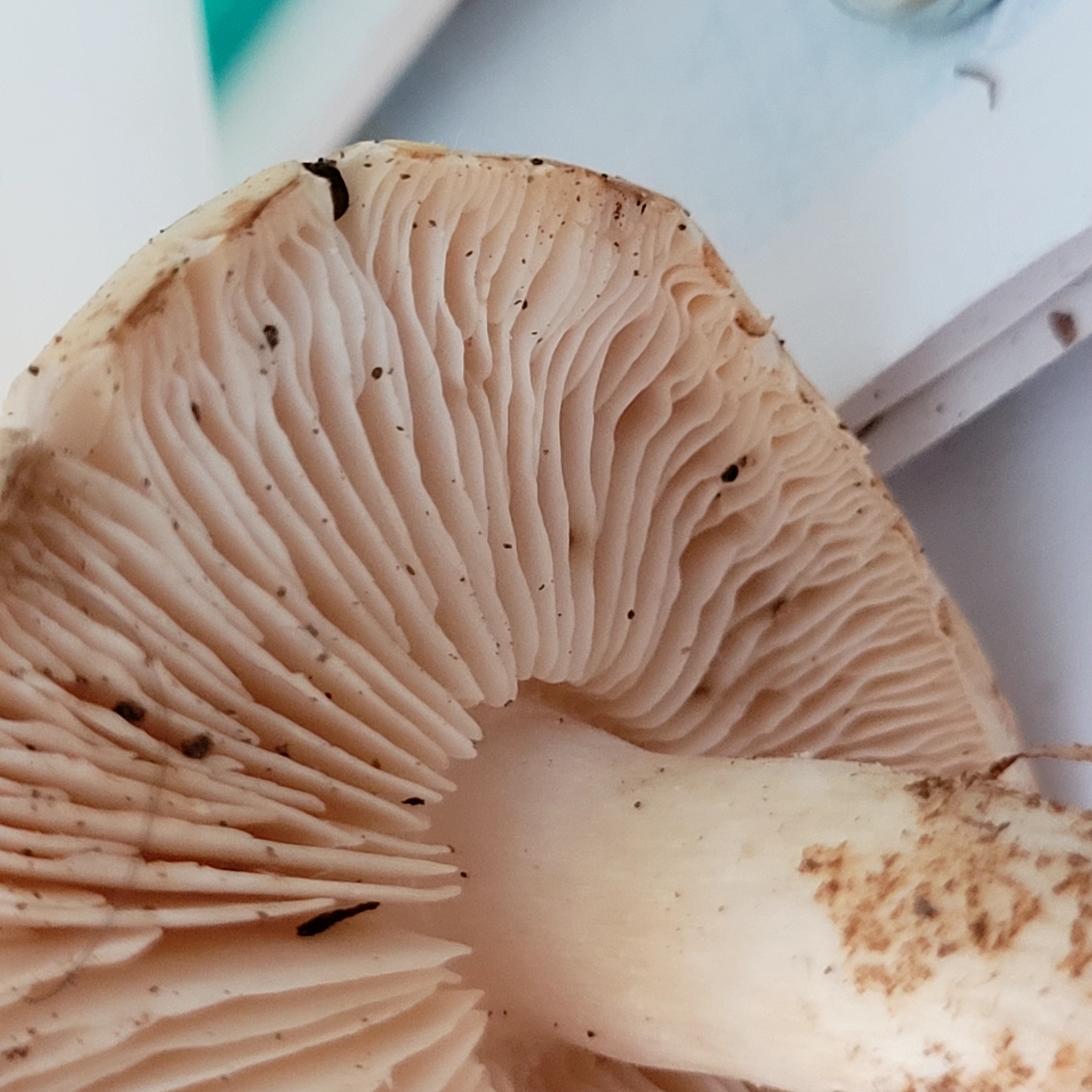 Lamellen: frei, ziemlich gedrängt, weiss.