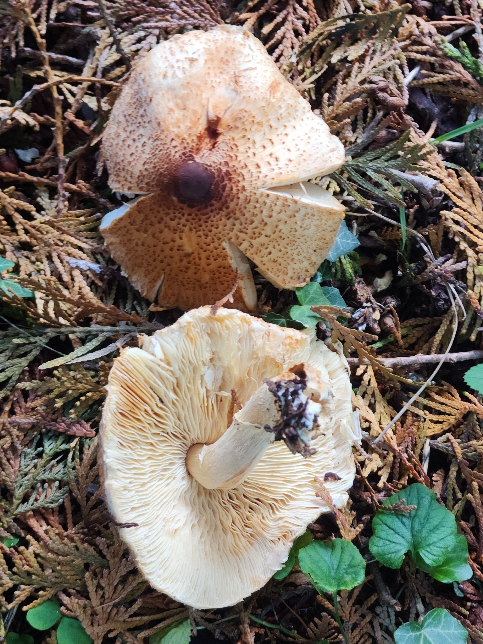 Home > Basidiomycota > Agaricomycetes > Agaricales > Agaricaceae > Lepiota > Ockerbrauner Schirmling