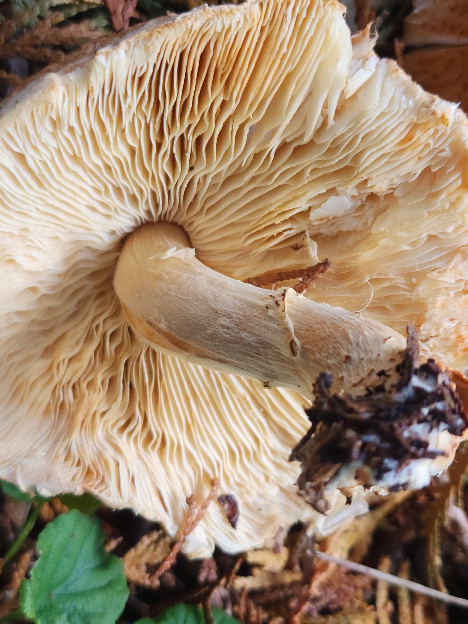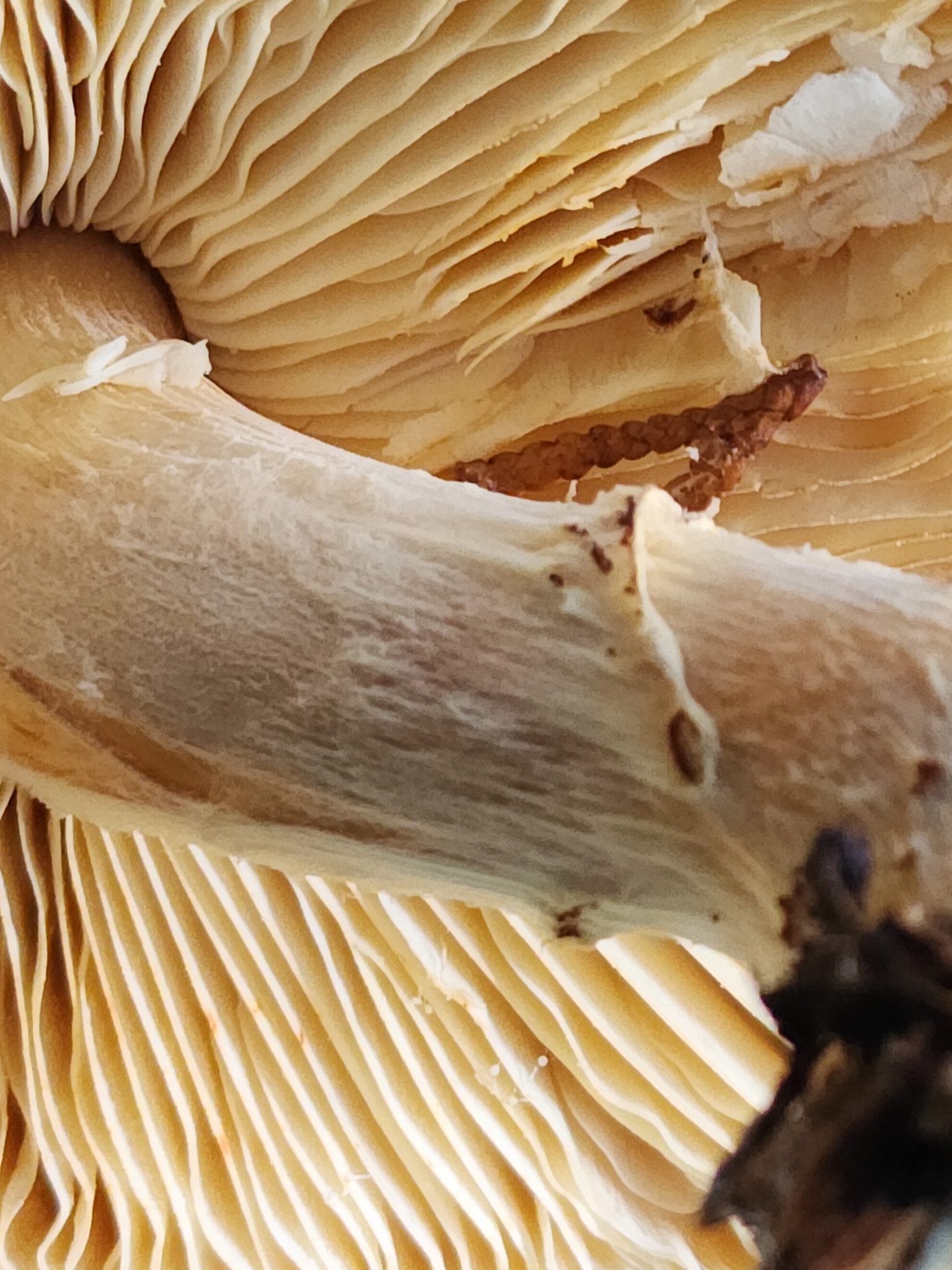 Lamellen: frei, gedrängt, weisslich bis blass cremeocker.