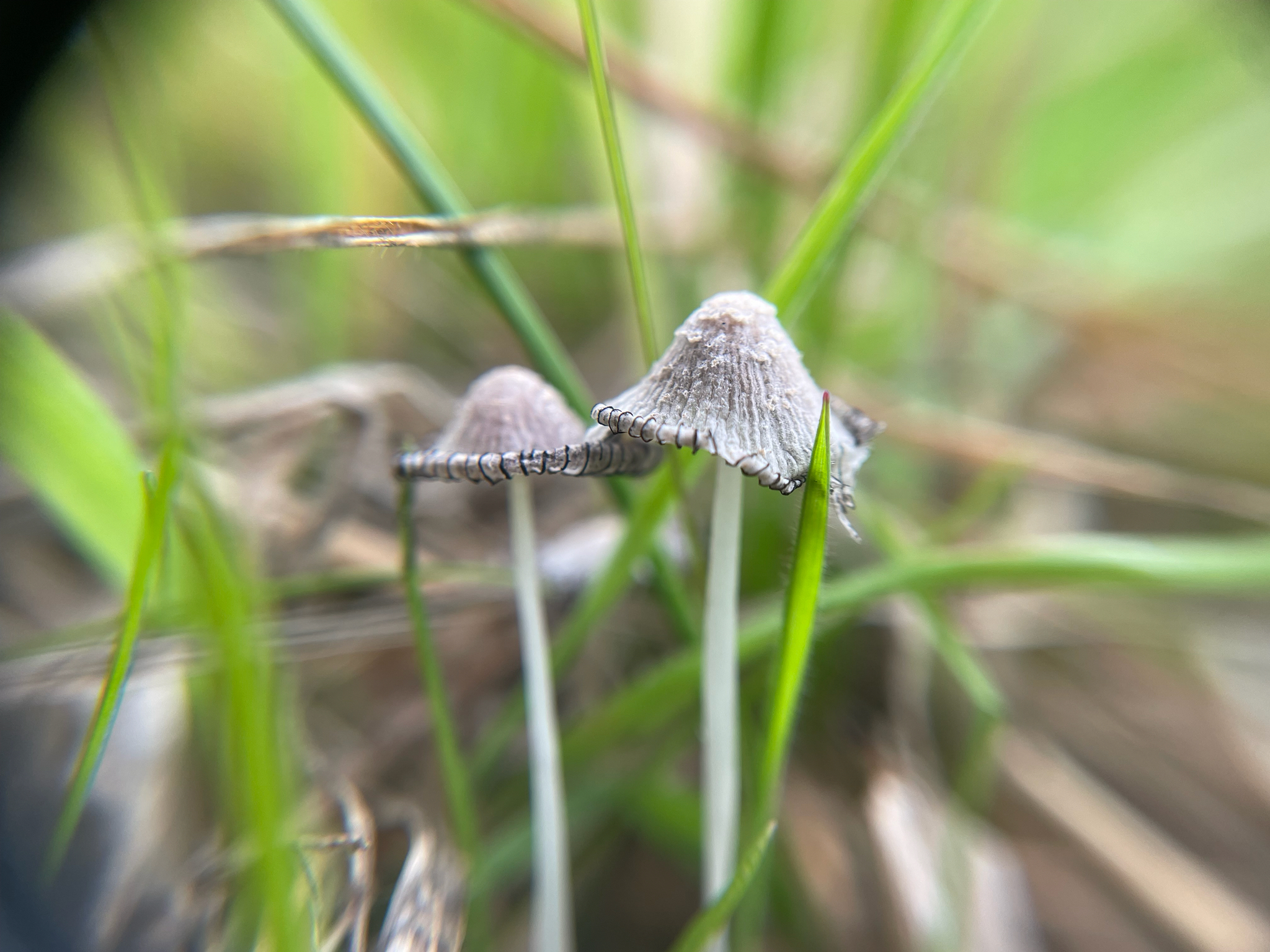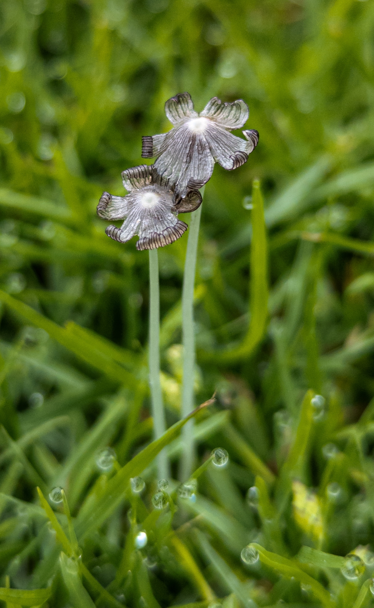 Stiel: schlank, haardünn, weiss, pulverig mit flockiger verdickter Basis, später verkahlend.