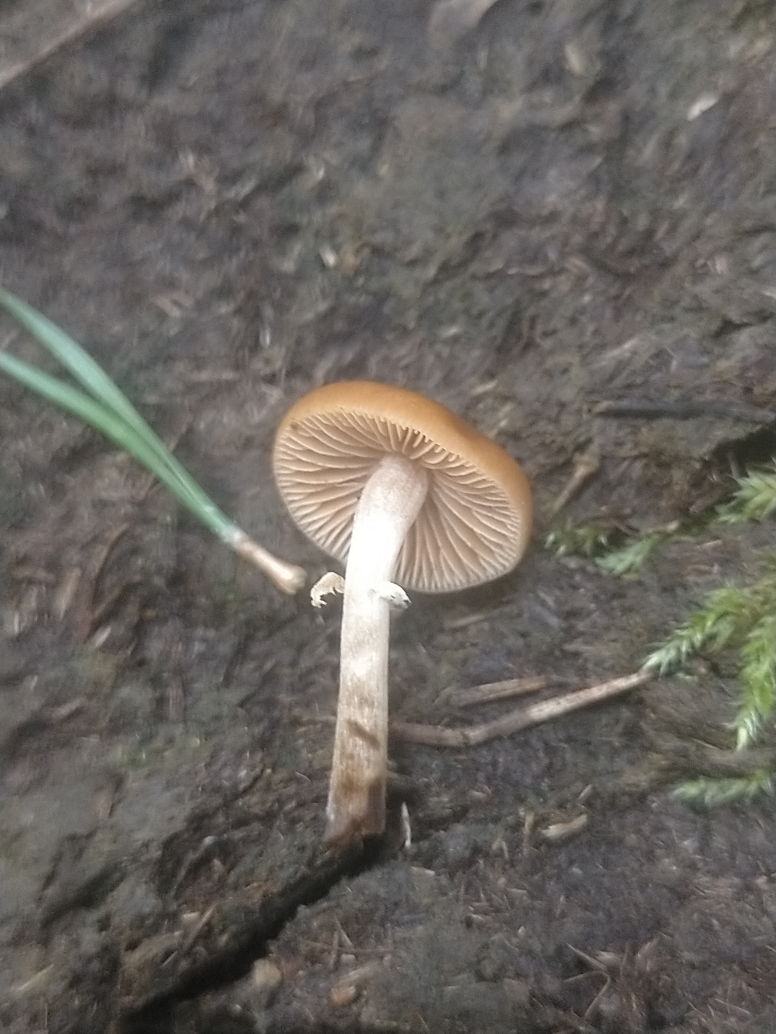 Lamellen: schmal angewachsen, sehr dicht stehend, ocer bis blass rostbraun.