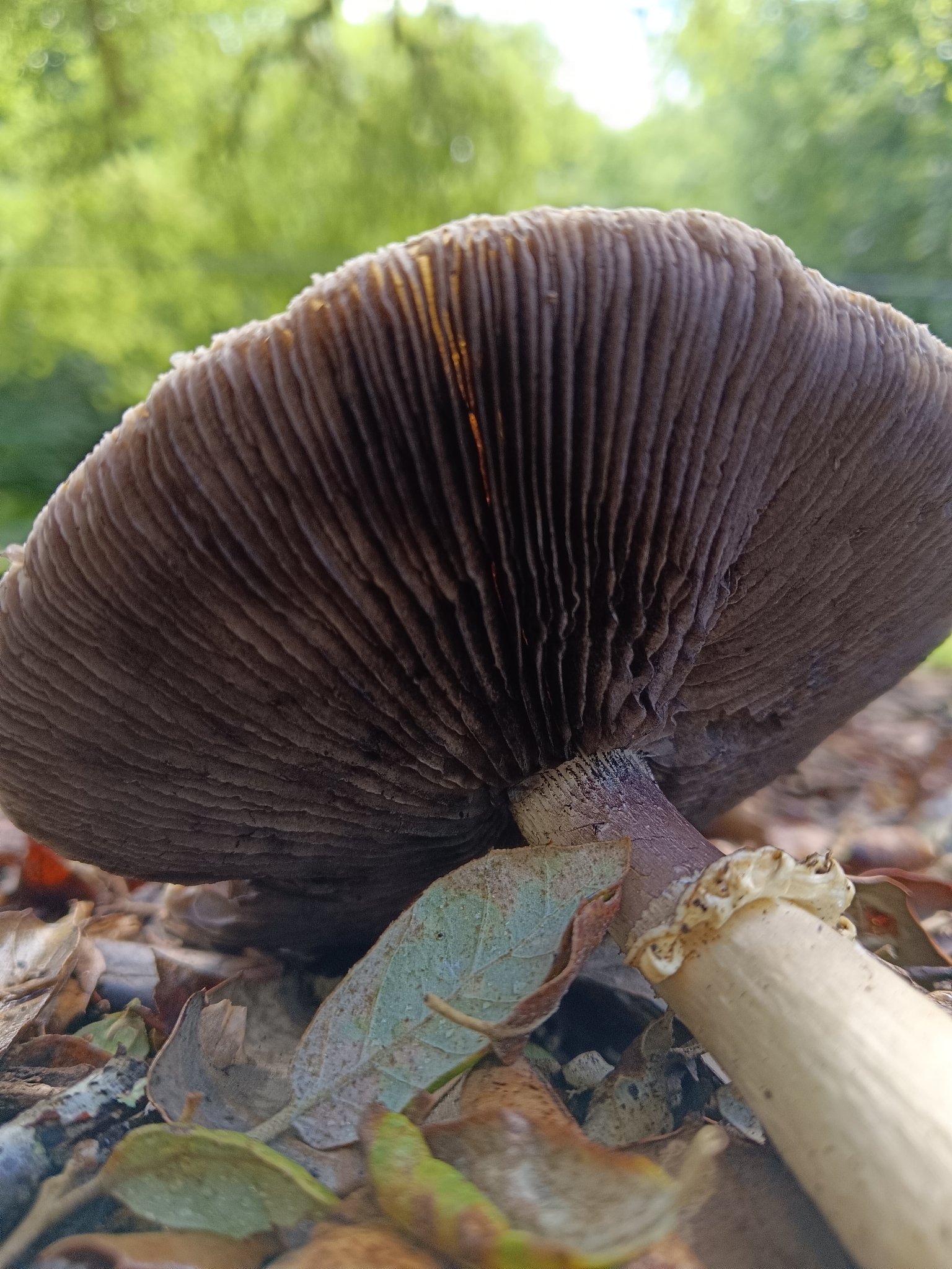 Lamellen: dicht, angewachsen, weisslich bis grauviolett
