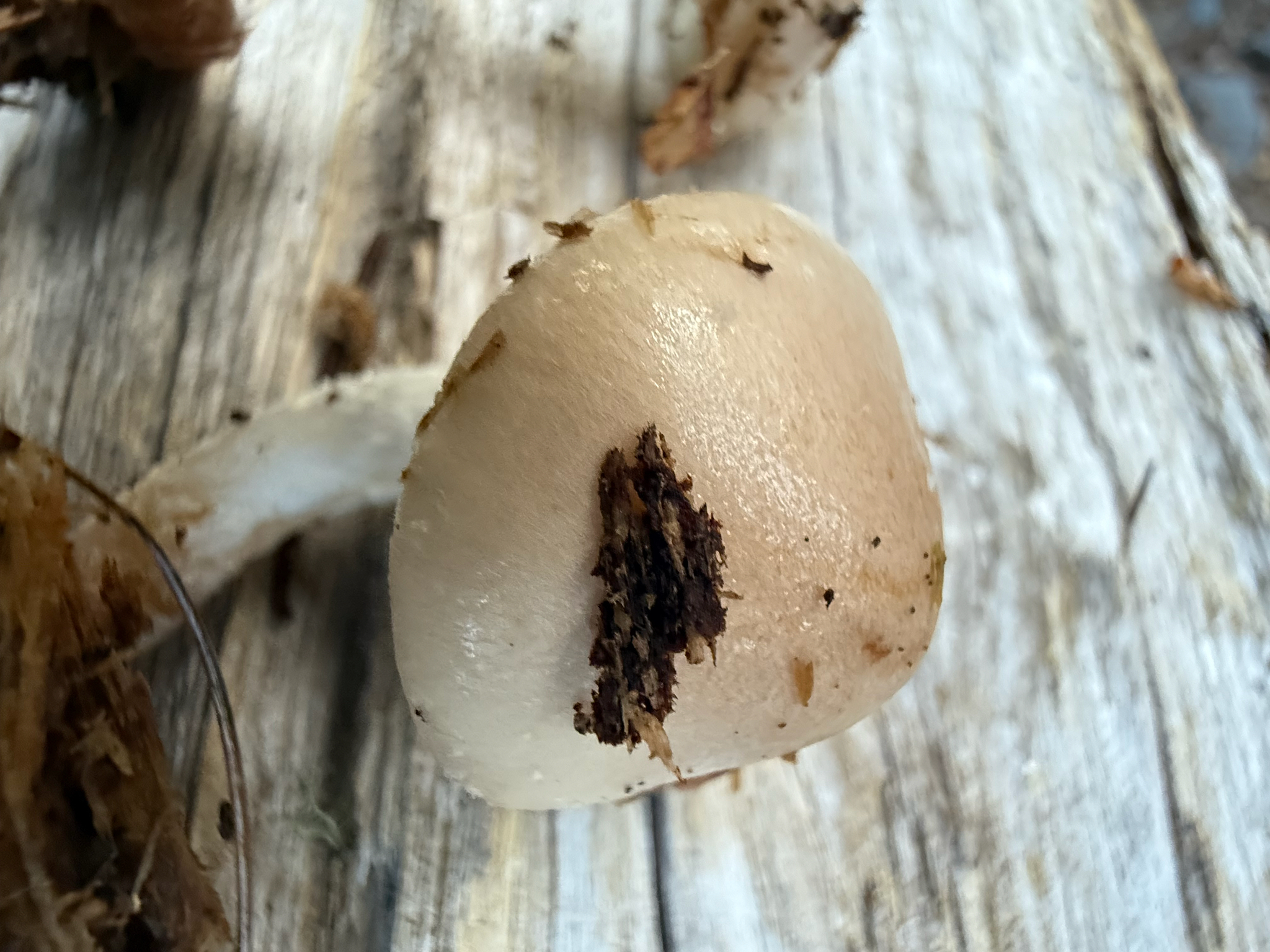 Stiel: trocken, weisslich, jung mit faserigem flüchtigem Ring, zur Basis flockig-schuppig, Basis bräunlich.