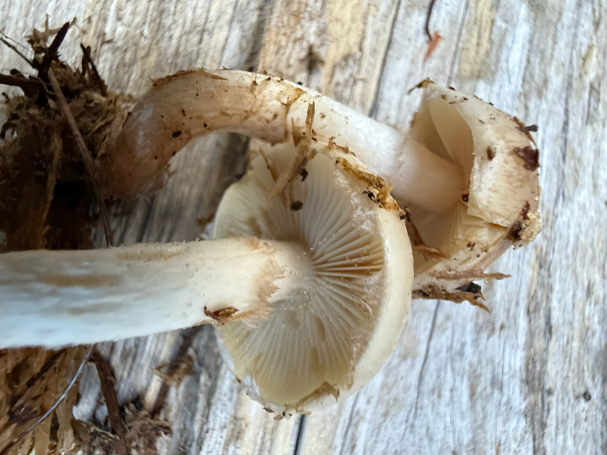 Lamellen: gerade angewachsen, etwas herablaufend, lange blass, später tonbraun.