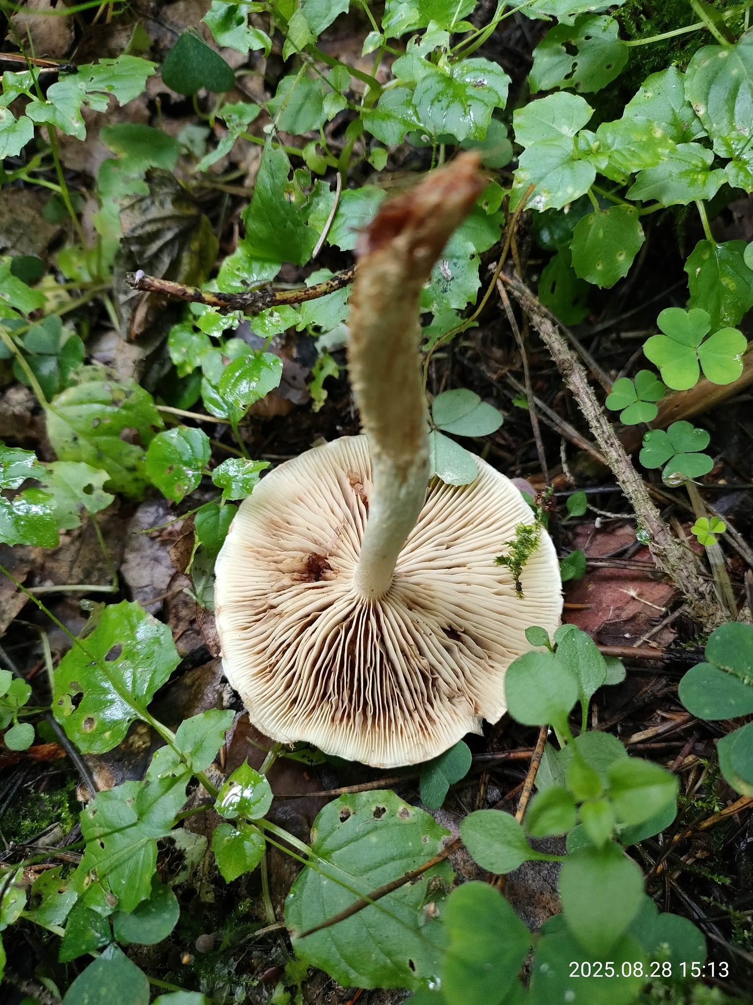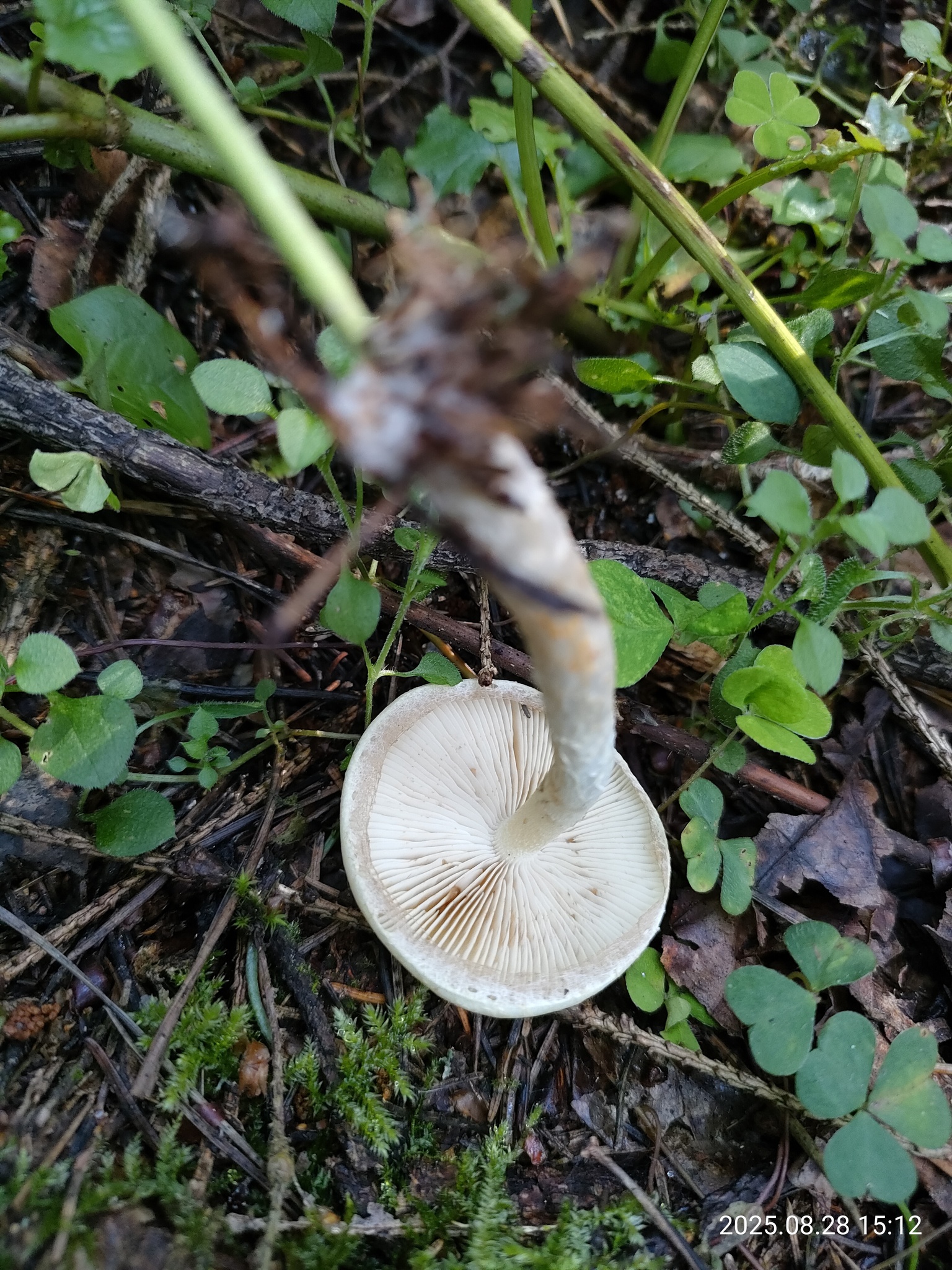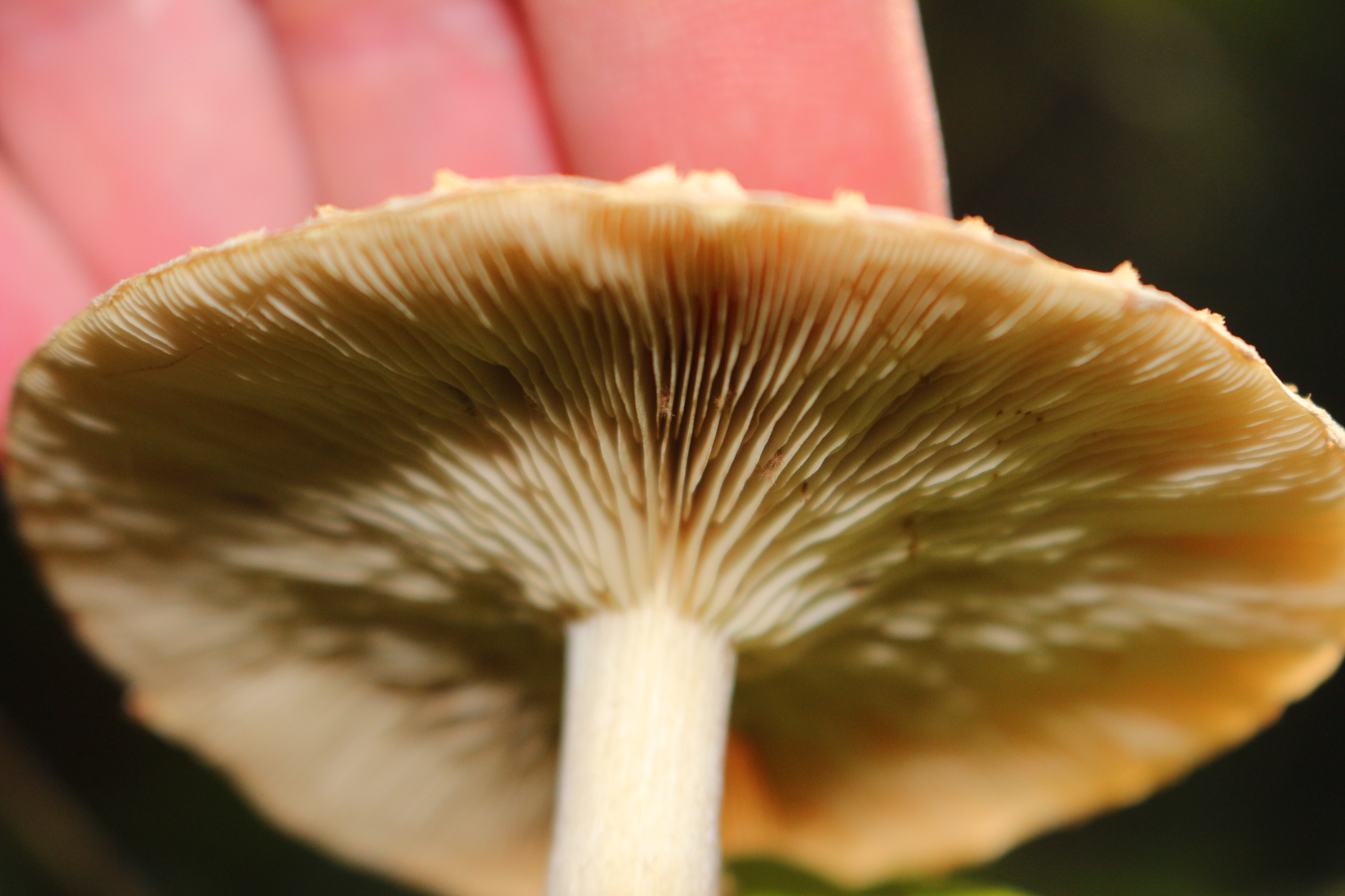 Lamellen: ausgebuchtet, ziemlich gedrängt, jung weisslich blass, später graubräunlich, auch graugrünlich.