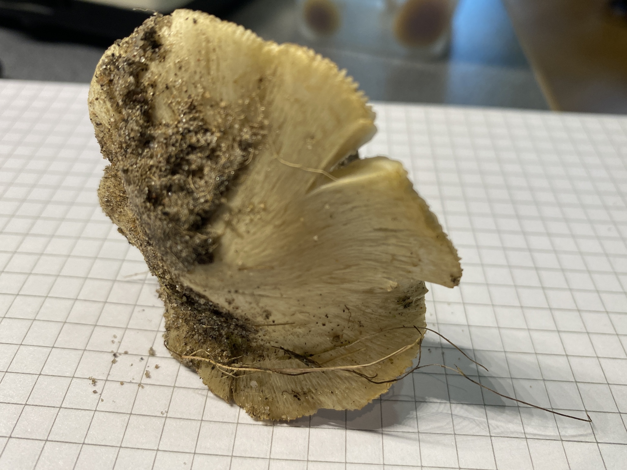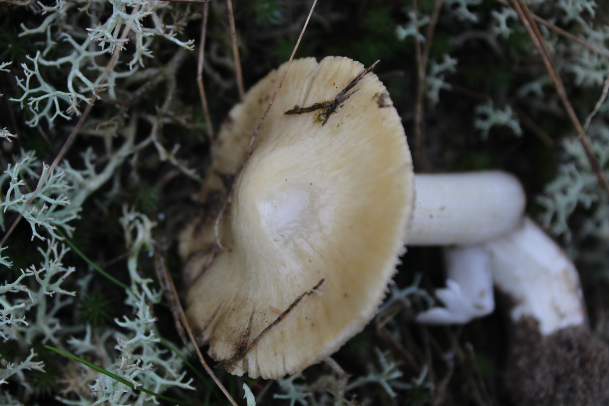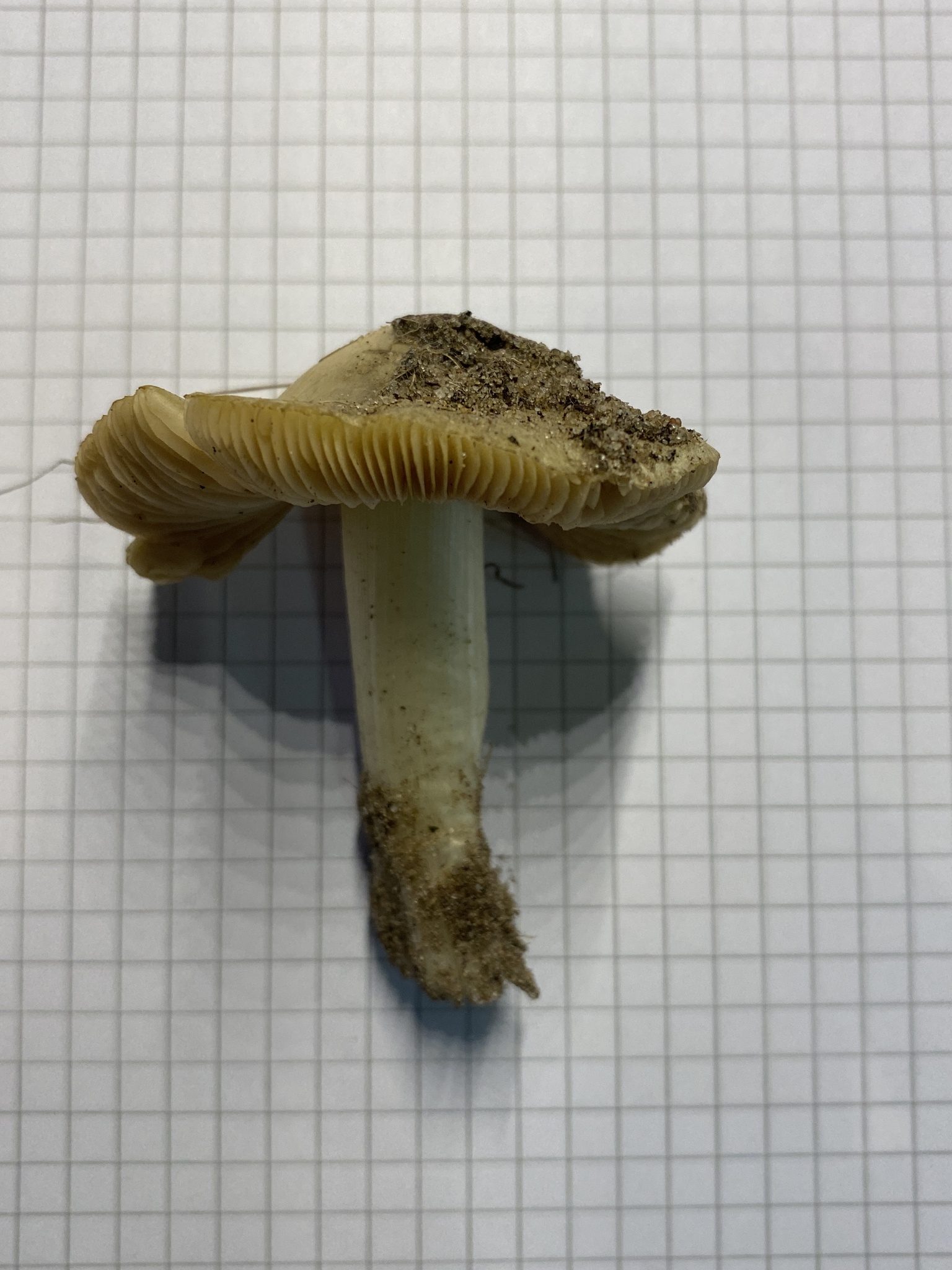Lamellen: ausgebuchtet, schmal angewachsen, gedrängt, bauchig, cremeweiss bis beige.