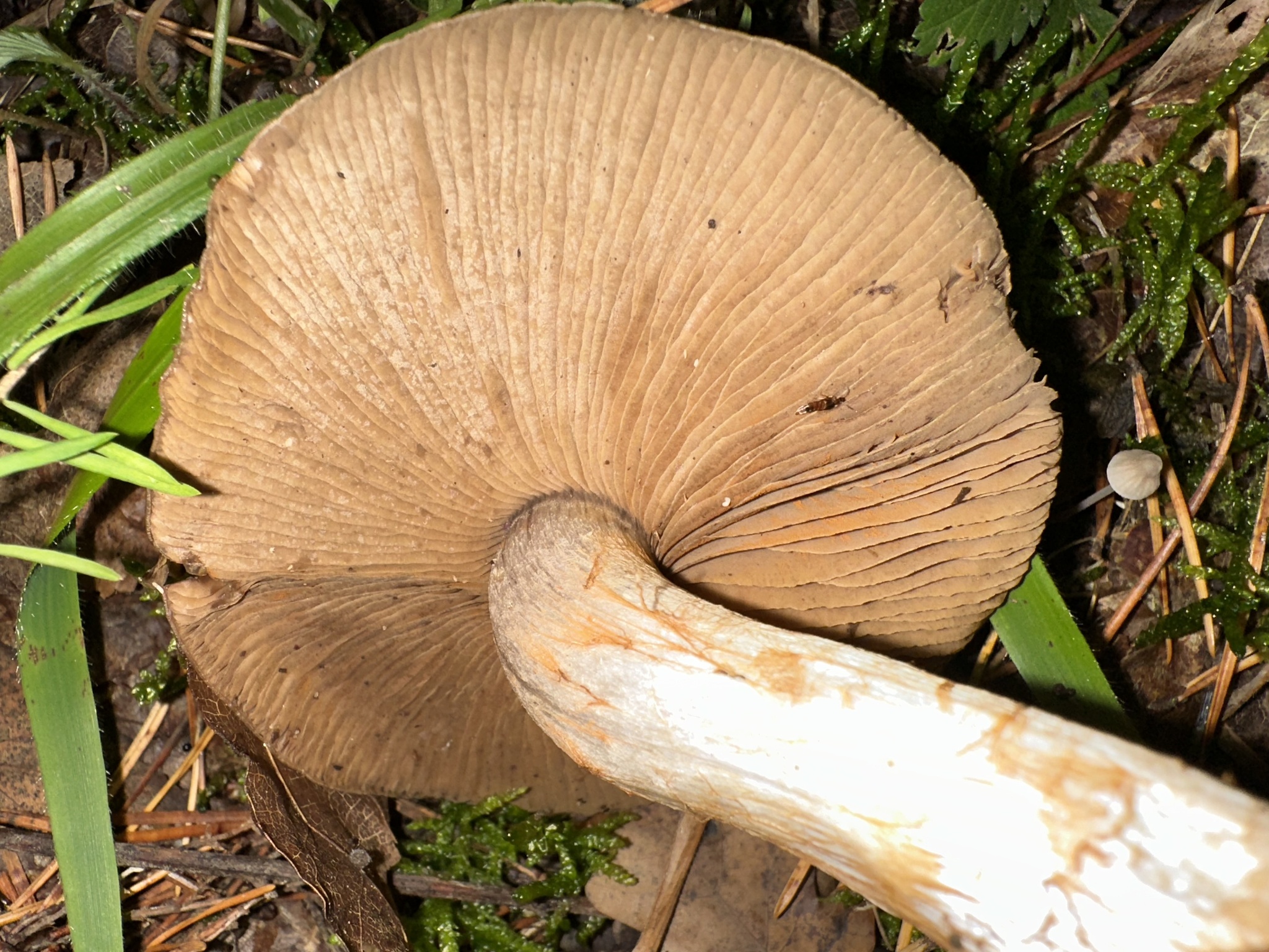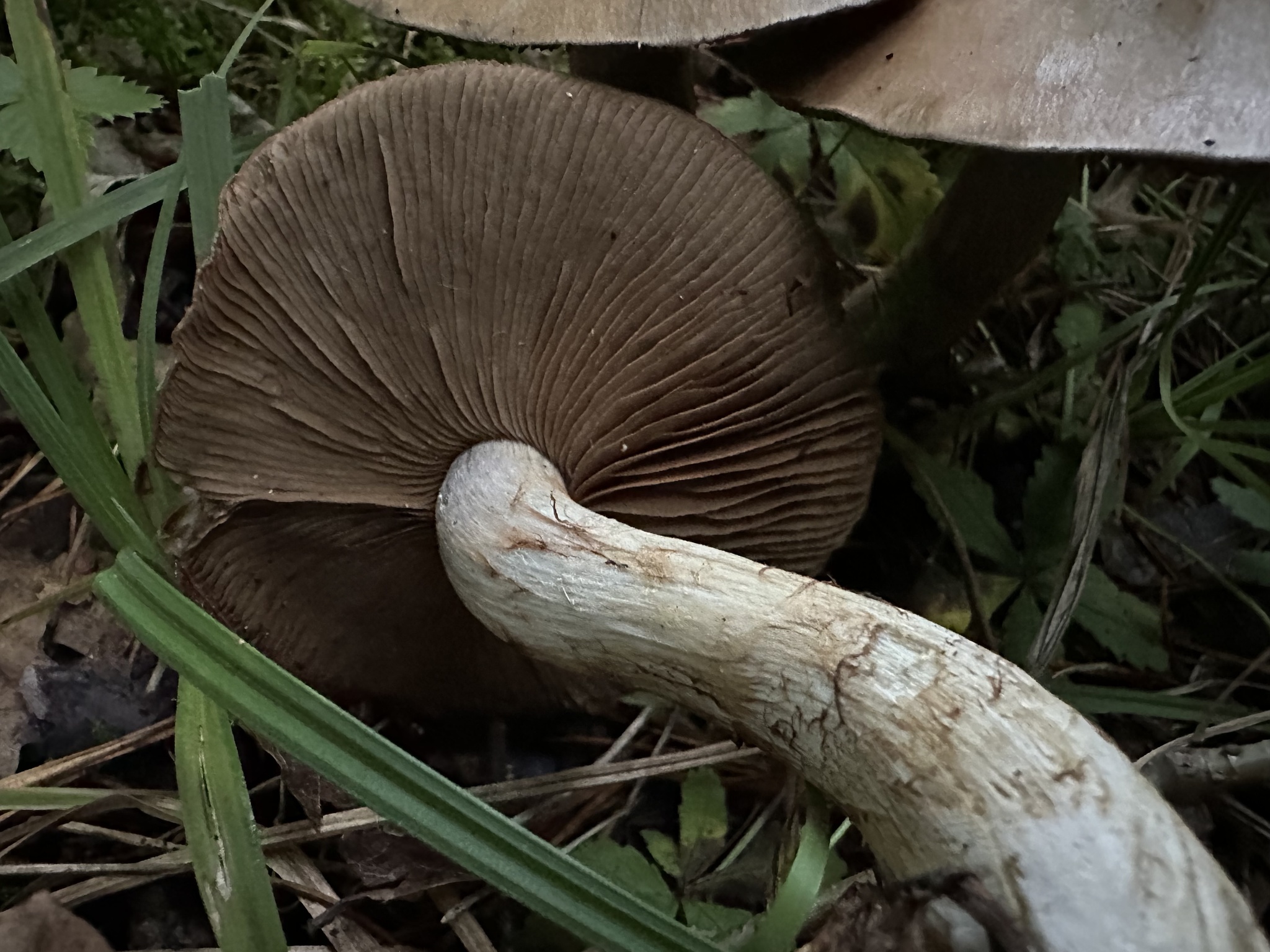 Lamellen: sehr dicht, ausgebuchtet, jung dunkel olivgrau bis olivschwarz mit hellerer Schneide, später rostbraun, manchmal auch einen Hauch von Violett oder Zimtbraun.