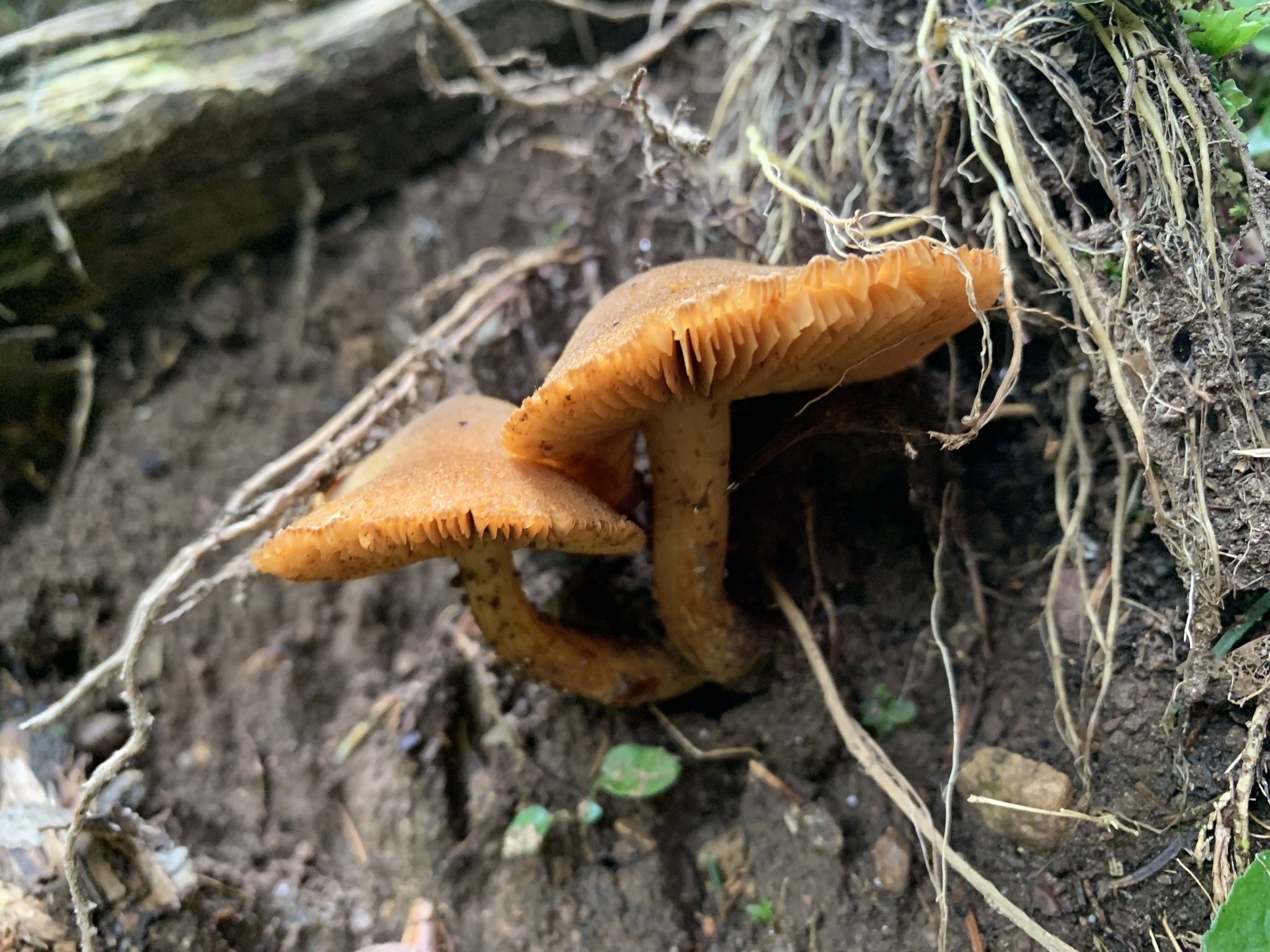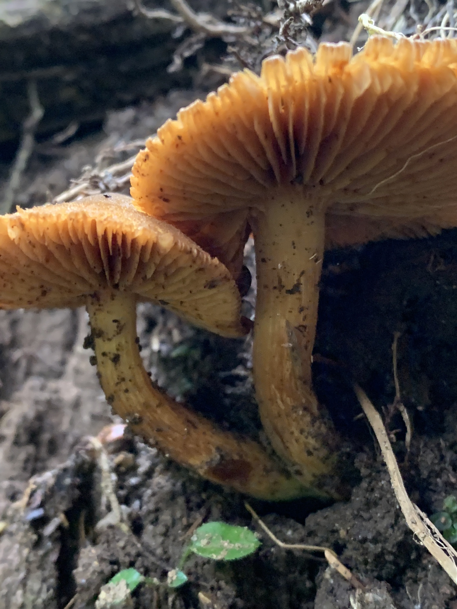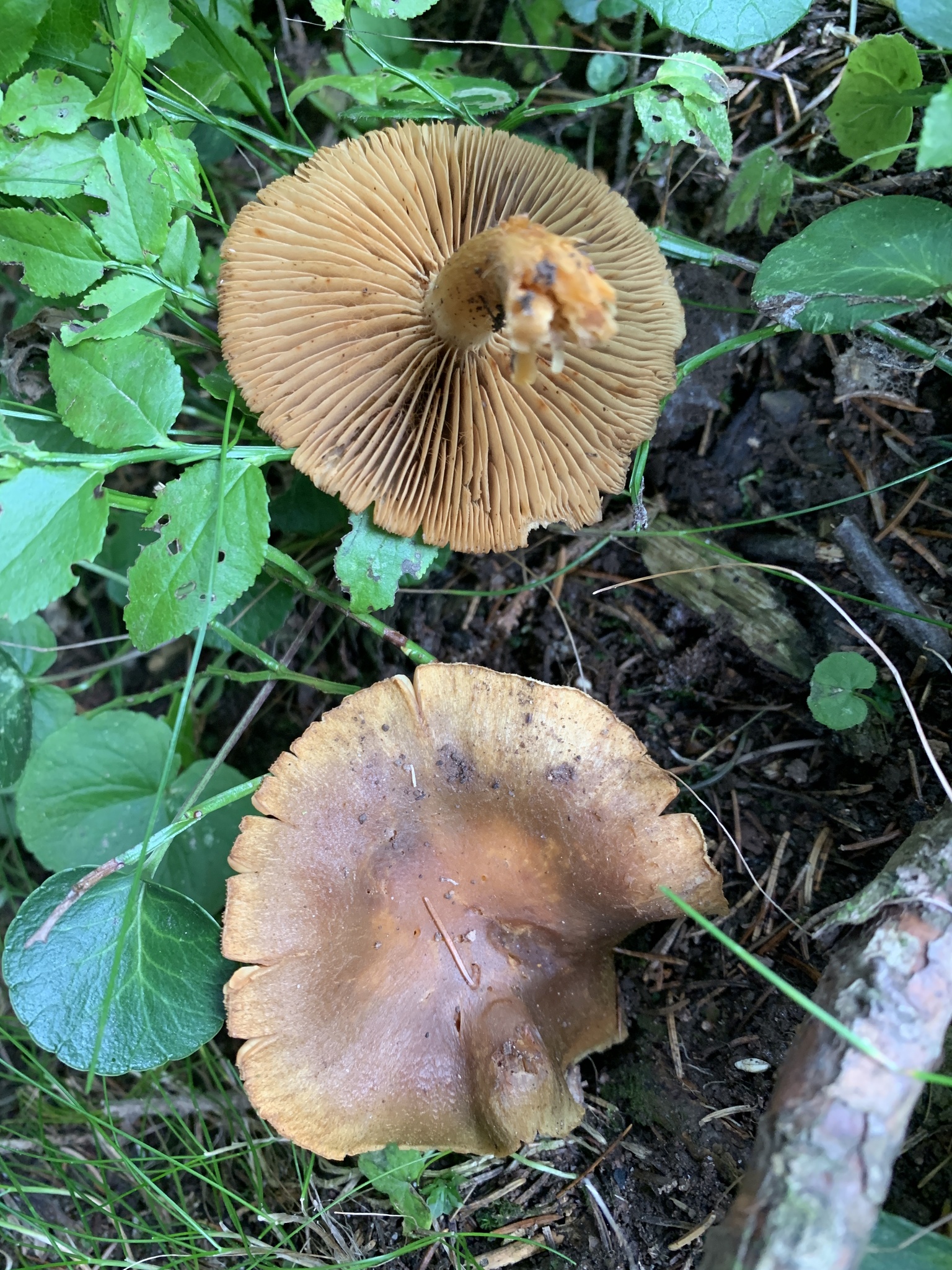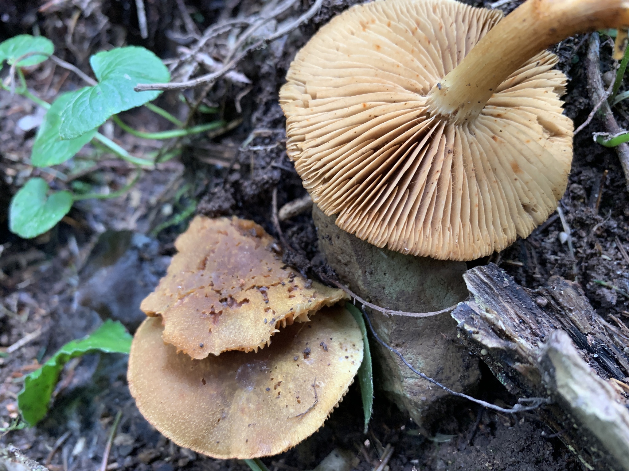 Lamellen: ausgebuchtet angewachsen, olivgrün, später bräunlich, Schneiden heller.