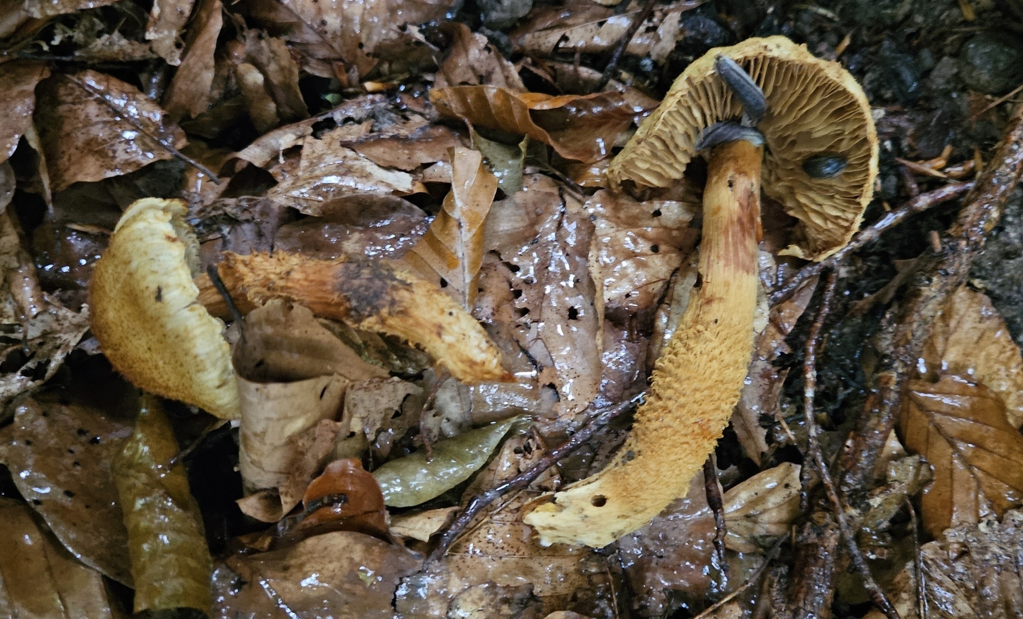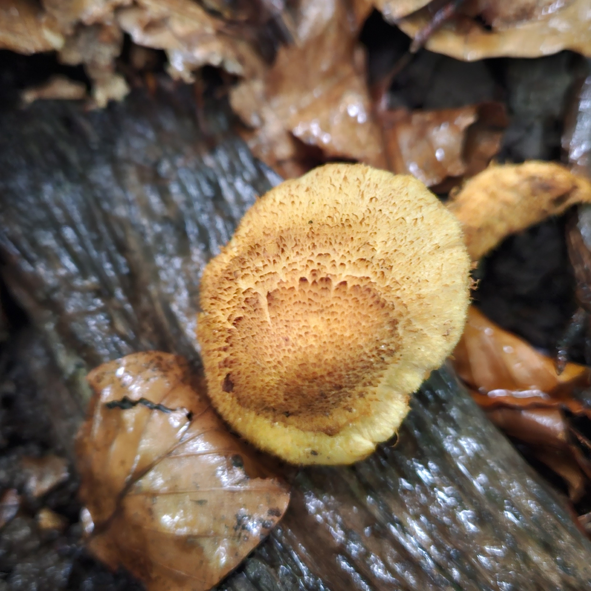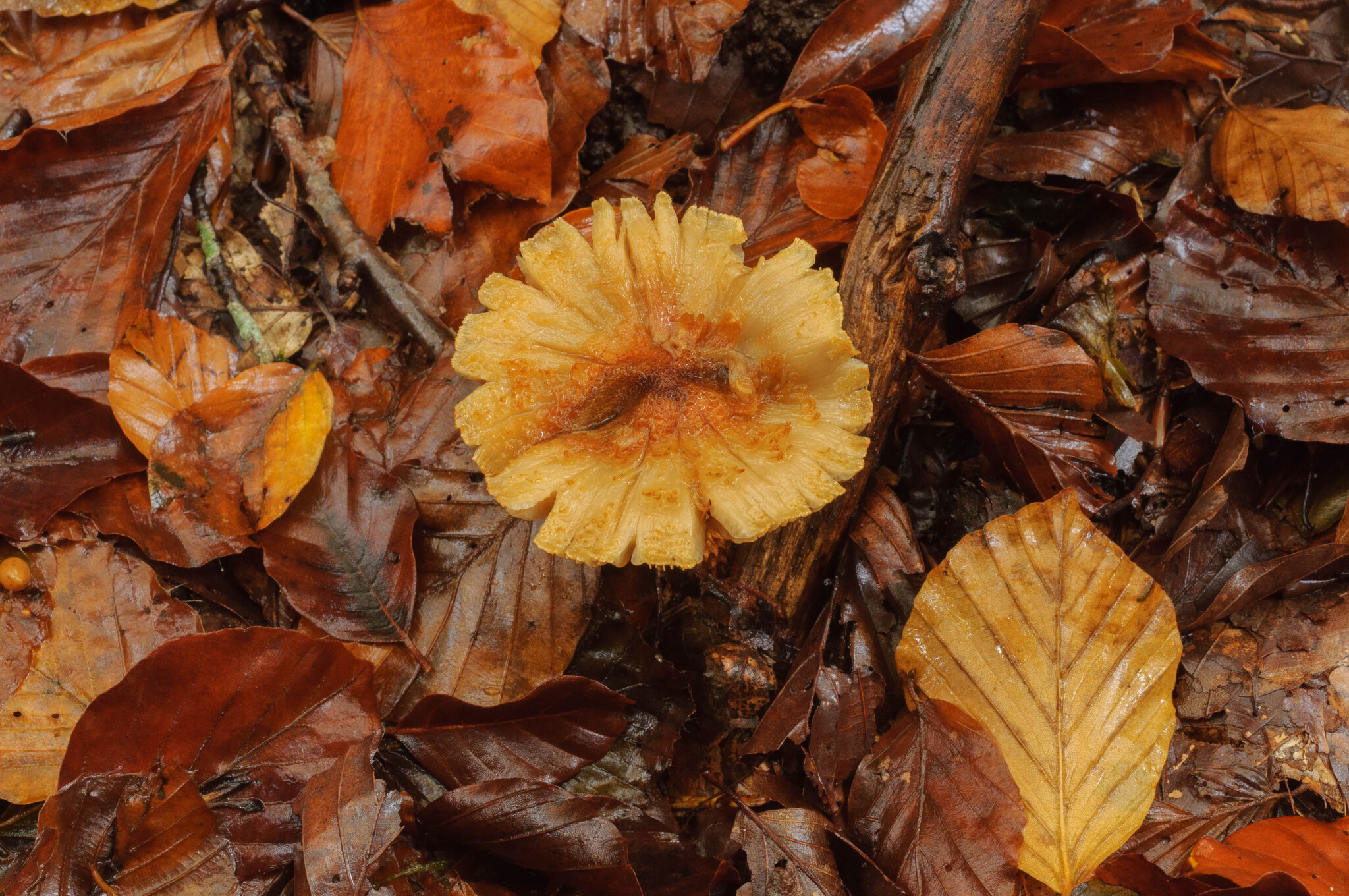 Lamellen: blassgelb, später ockergelb, relativ dicht stehend, mit Zahn herablaufend.