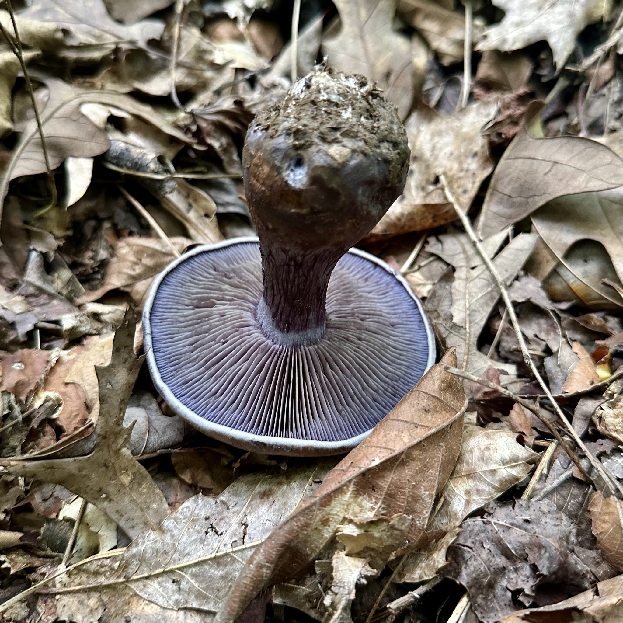 Lamellen: schwach ausgebuchtet, ziemlich gedrängt, lebhaft tiefblau, später blaubraun.