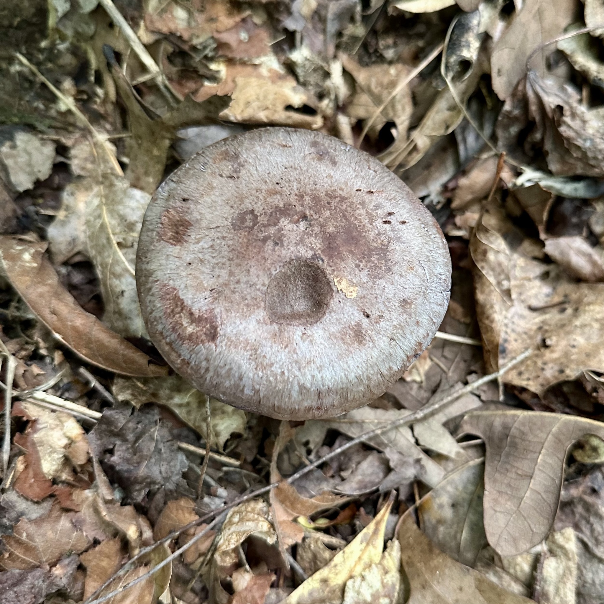 Hut: jung lange halbkugelig gewölbt, dann flach gewölbt, trocken, eingewachsen faserig, graublau, violettgrau, später kahl, bläulichbraun.