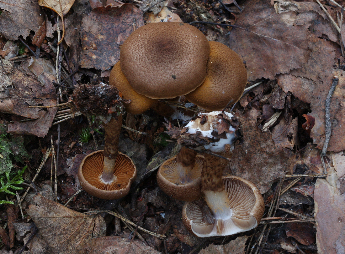 Lamellen: ausgebuchtet, jung blassbraun, später zimtbraun, Schneiden meist heller.
