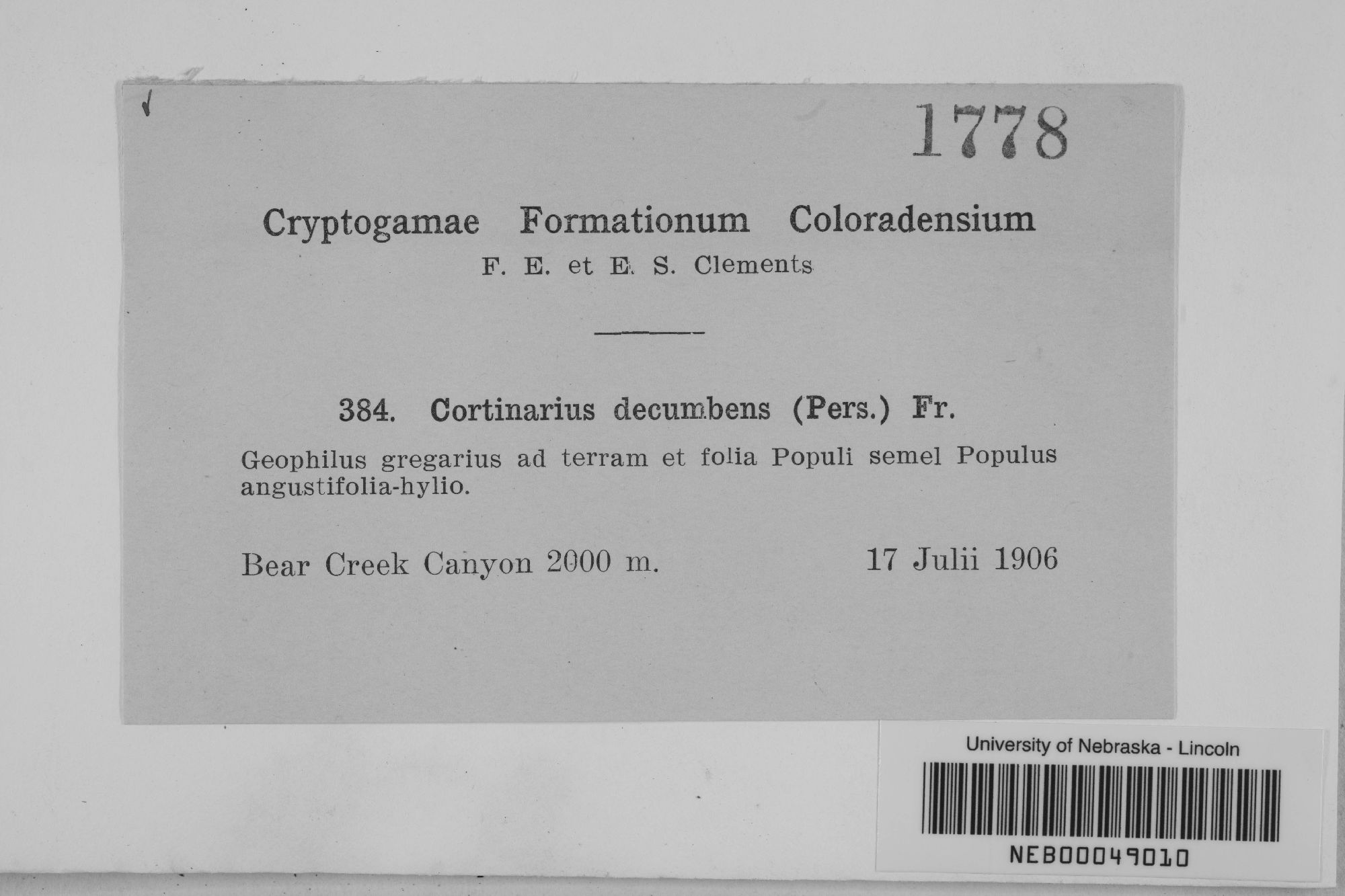 University of Nebraska State Museum, C.E. Bessey Herbarium - Fungi (NEB-)