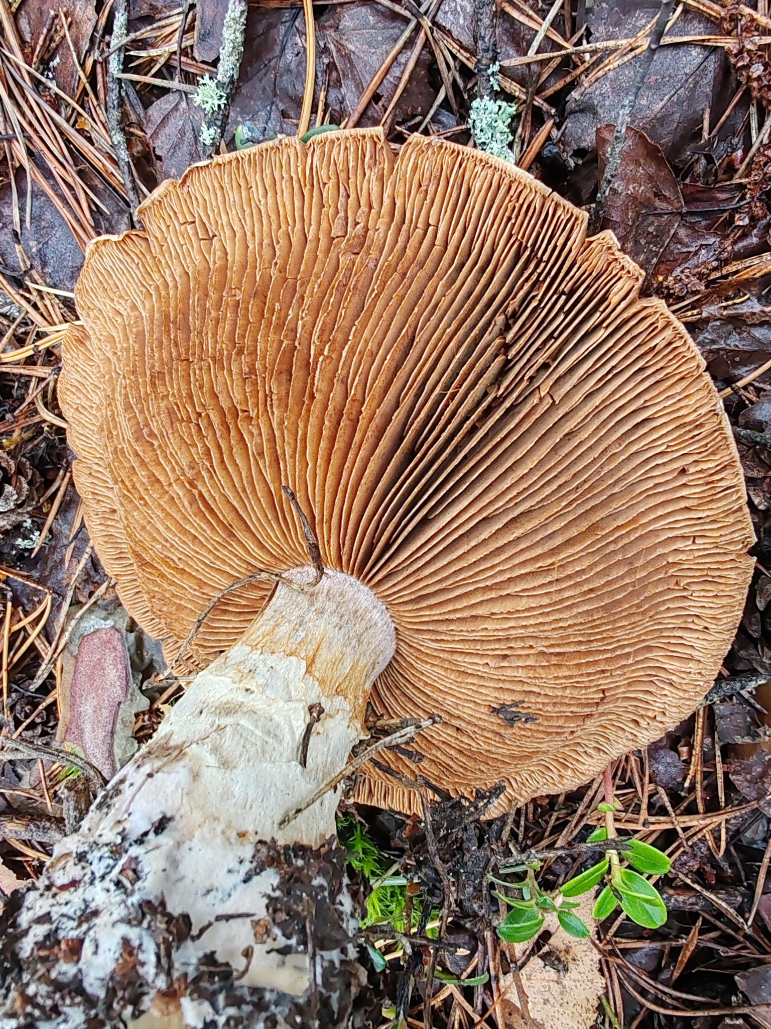 Lamellen: ausgebuchtet, lebhaft zimtrot, gedrängt, später rostbraun.