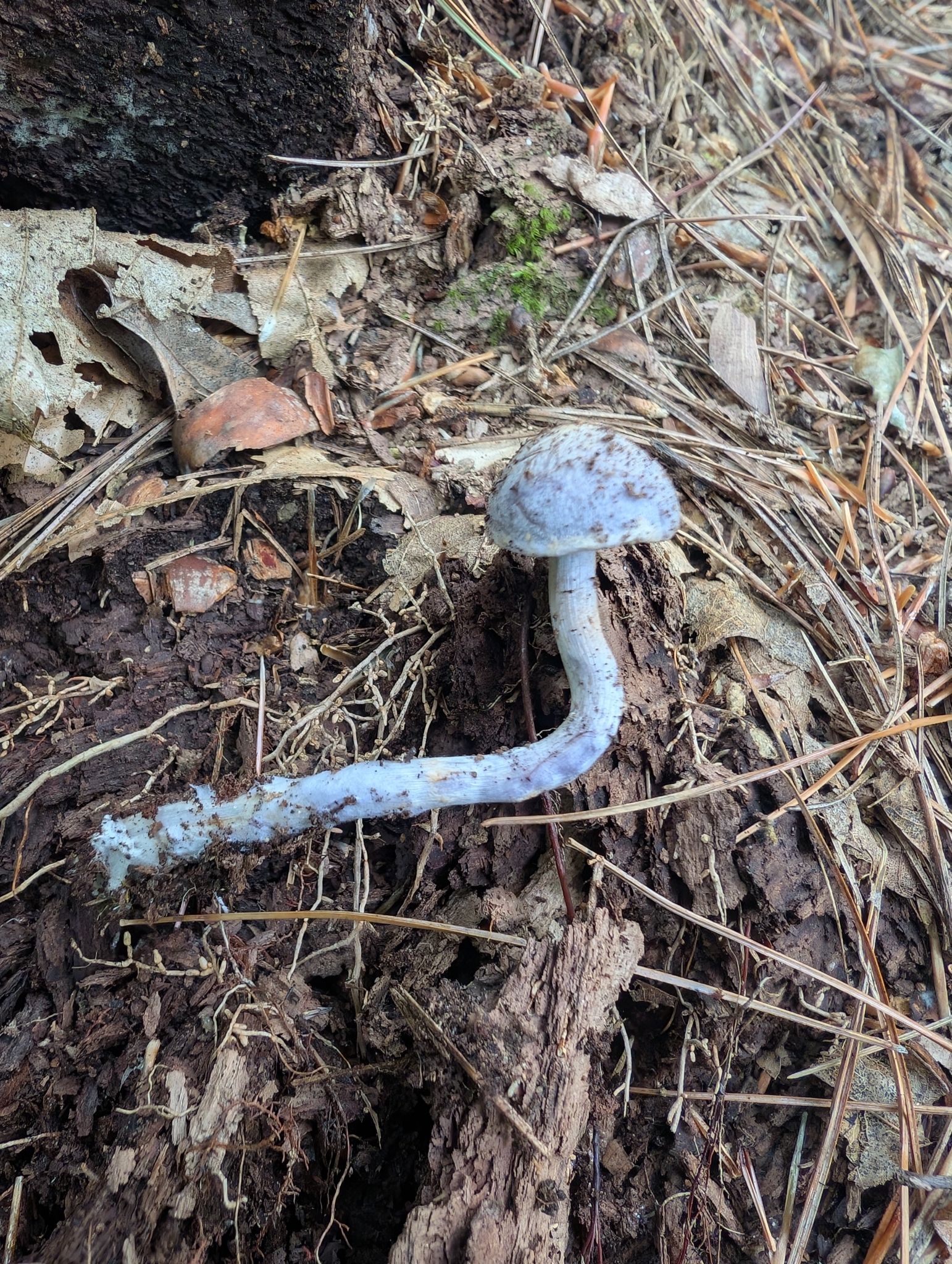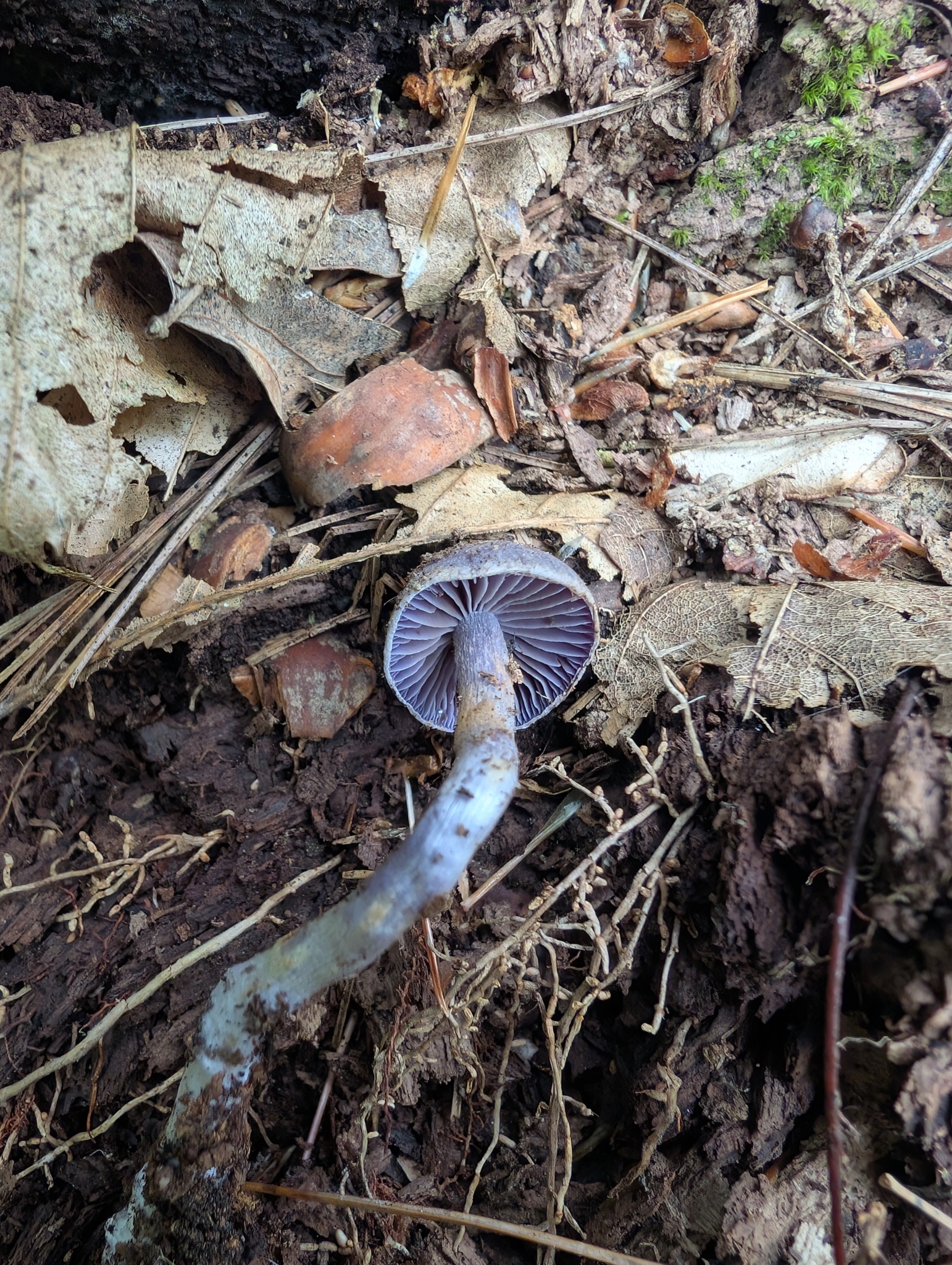 Stiel: Spitze lila, zur Basis weisslich faserig, Basis meist keulig verdickt.