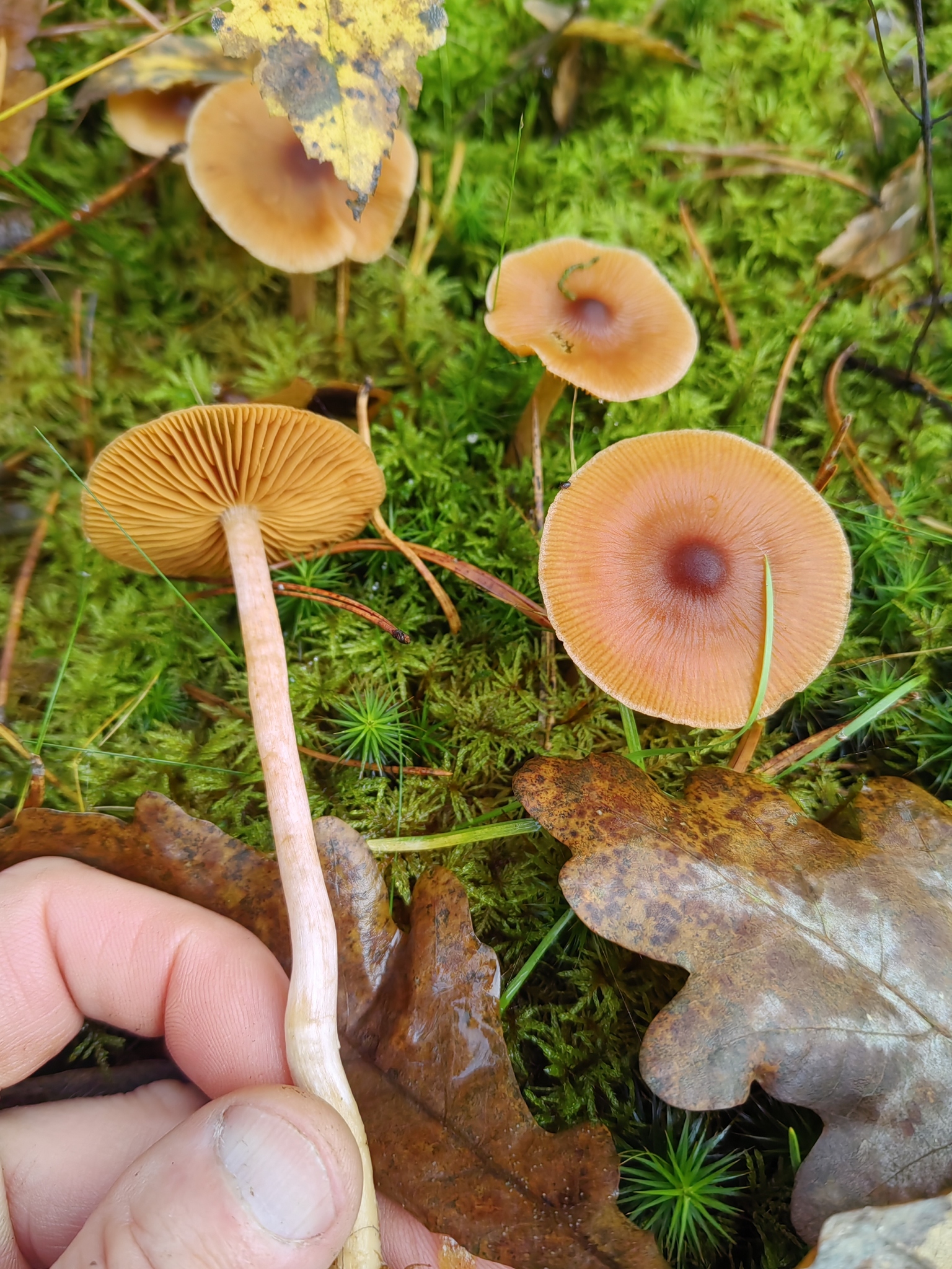 Lamellen: angewachsen, ziemlich entfernt stehend, angewachsen, dünn, gelbbraun bis rostbraun.
